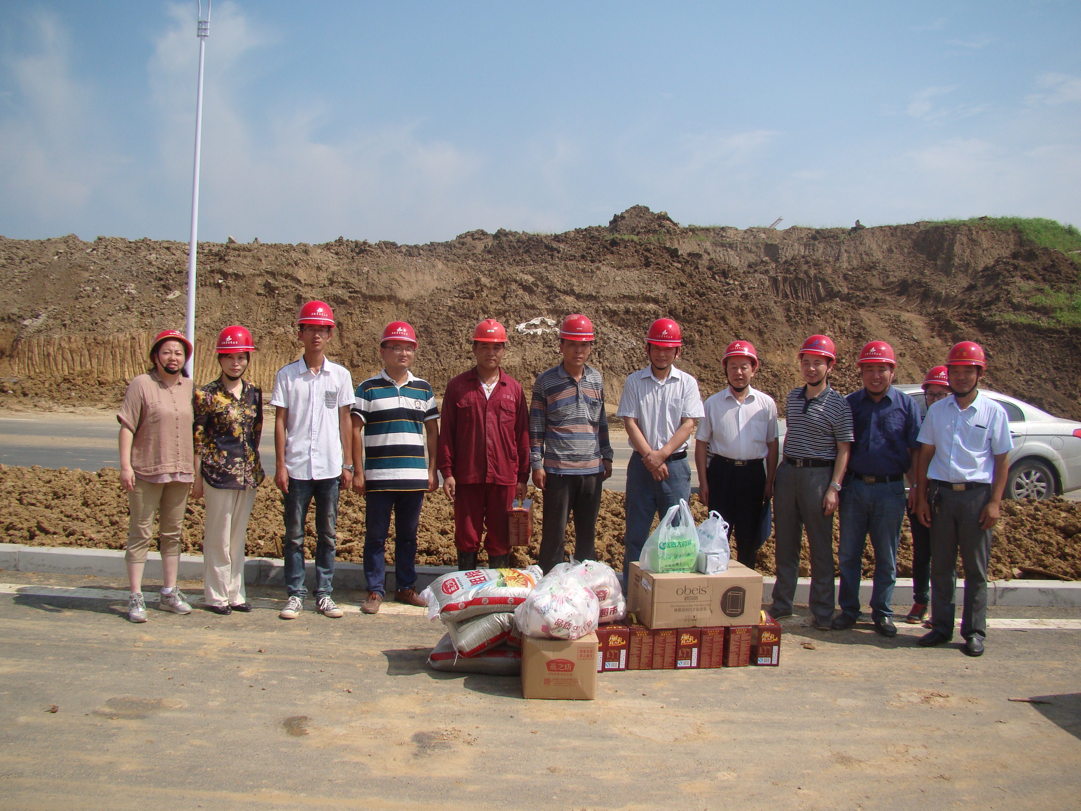 牛書記一行仔細查看了項目施工進展情況,并聽取了第一分公司經(jīng)理陳長征對該項目施工情況的介紹。高溫下,施工現(xiàn)場的蒸汽管道焊接工作仍然緊張有序的開展著,焊接施工人員蹲在將近3米深的坑道內(nèi)作業(yè),狹小的空間、炙熱的太陽、露天的管道,他們的臉上早已滿是汗水,衣服全部濕透。領(lǐng)導(dǎo)們對大家在烈日下?lián)]汗作業(yè)、不畏艱辛的敬業(yè)精神表示贊揚。隨后將綠豆、白糖、藥品、毛巾、洗發(fā)水、飲料等防暑降溫物品分別發(fā)放到一線員工的手中。當(dāng)牛書記聽說項目現(xiàn)場還有新來大學(xué)生時,對大學(xué)生進行了問候,并希望大學(xué)生們可以在項目上得到鍛煉和成長。