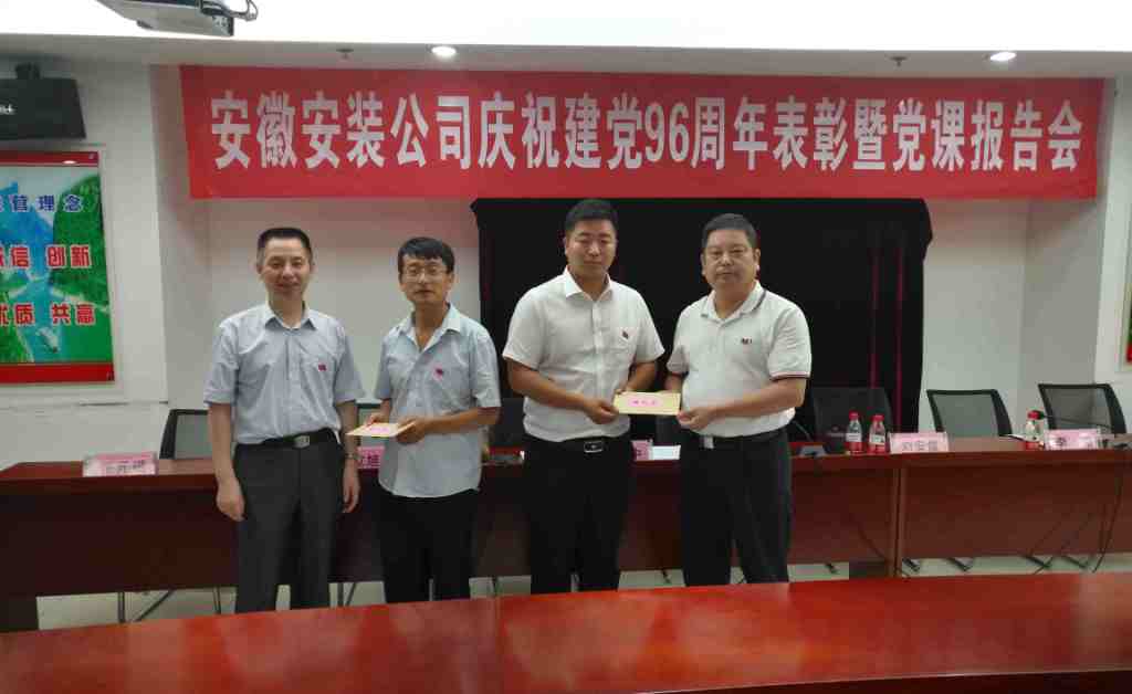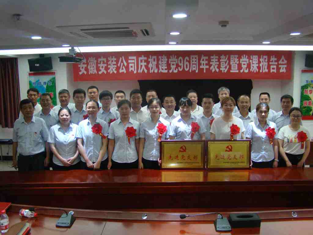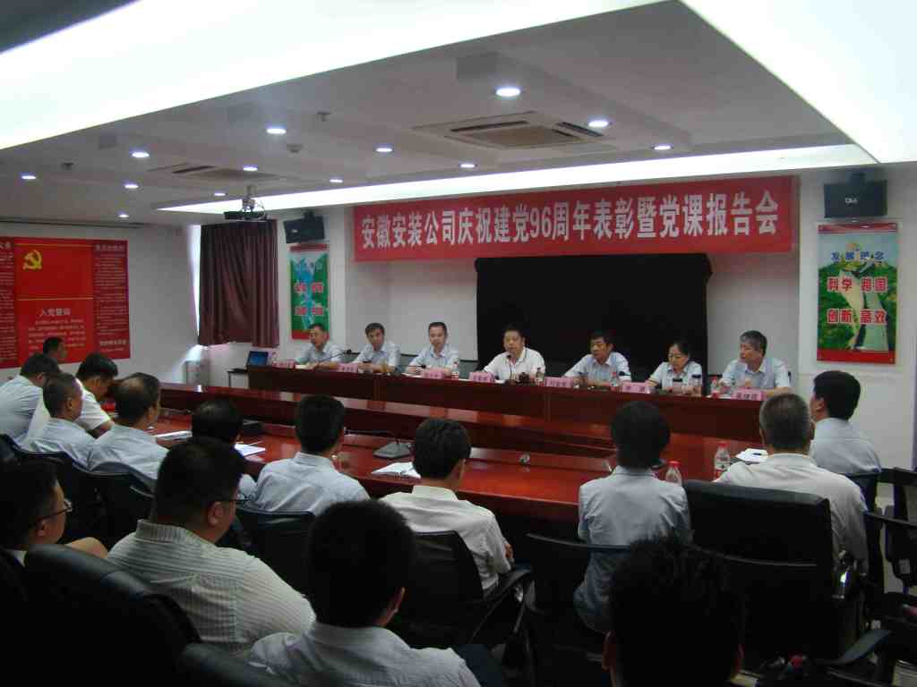 6月29日下午,安徽安裝公司召開慶祝建黨96周年表彰大會暨“七一”專題黨課活動,公司領導班子、在肥在崗黨員、入黨積極分子以及受表彰的先進集體、先進個人等60余人參加了會議。會議由公司董事長、總經理、黨委副書記王軍邦主持。