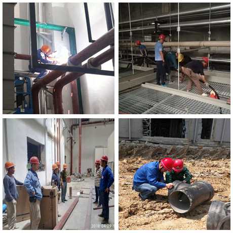 在省行政中心空調(diào)系統(tǒng)提升工程現(xiàn)場,面對工期短、難度大、施工條件局限,項目部爭分奪秒,克服夜間施工諸多困難,堅持24小時不間斷施工,有效確保了施工進度的完成。節(jié)日里,你們依舊加班加點,鉚足了勁投入到屋頂冷卻塔安裝、管道焊接作業(yè)等工作中。