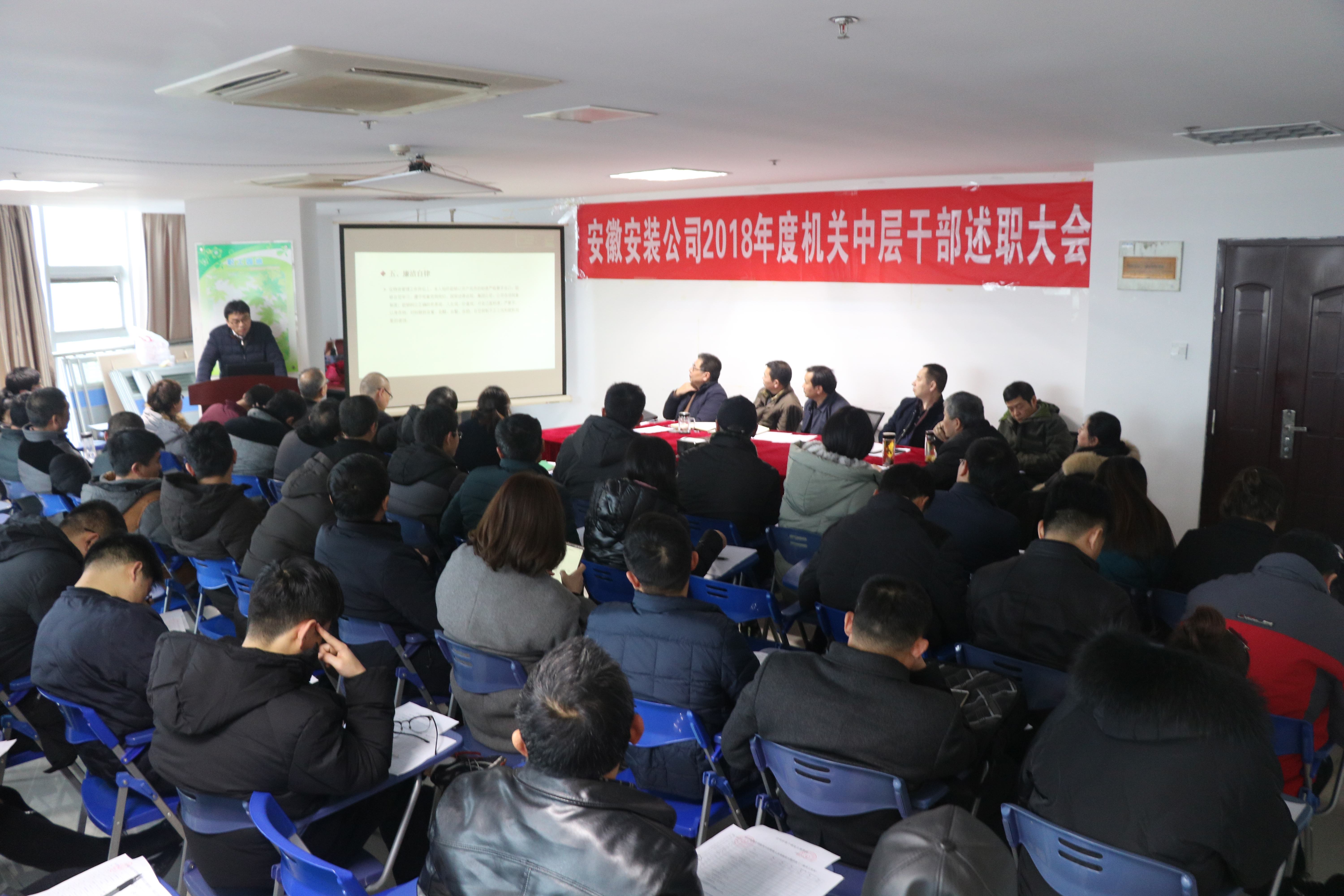 1月11日下午,安徽安裝公司召開2018年度機(jī)關(guān)中層干部述職述廉大會(huì)。公司領(lǐng)導(dǎo)班子成員、機(jī)關(guān)中層干部、分公司黨政主要領(lǐng)導(dǎo)、機(jī)關(guān)全體員工共80余人參加了此次會(huì)議。大會(huì)由公司黨委書記、董事長(zhǎng)胡六中主持。