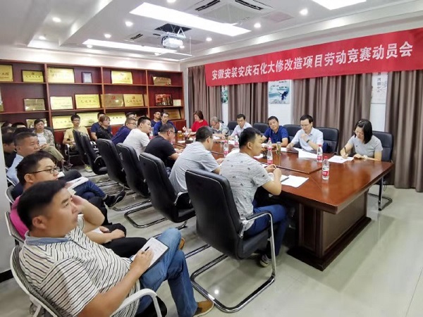 為激發(fā)廣大員工的工作熱情,確保年度各項(xiàng)目標(biāo)任務(wù)順利完成。根據(jù)集團(tuán)公司開展“搶進(jìn)度、保工期、穩(wěn)預(yù)期、促提升”為主題勞動(dòng)競(jìng)賽活動(dòng),安徽安裝安慶分公司從2019年10月1日—2020年1月10日開展“大干100天”勞動(dòng)競(jìng)賽。2019年9月28日下午,公司紀(jì)委書記、工會(huì)主席李寬旭,安慶分公司管理人員和施工班組長(zhǎng)共30多人參加了“大干100天”勞動(dòng)競(jìng)賽動(dòng)員會(huì)。