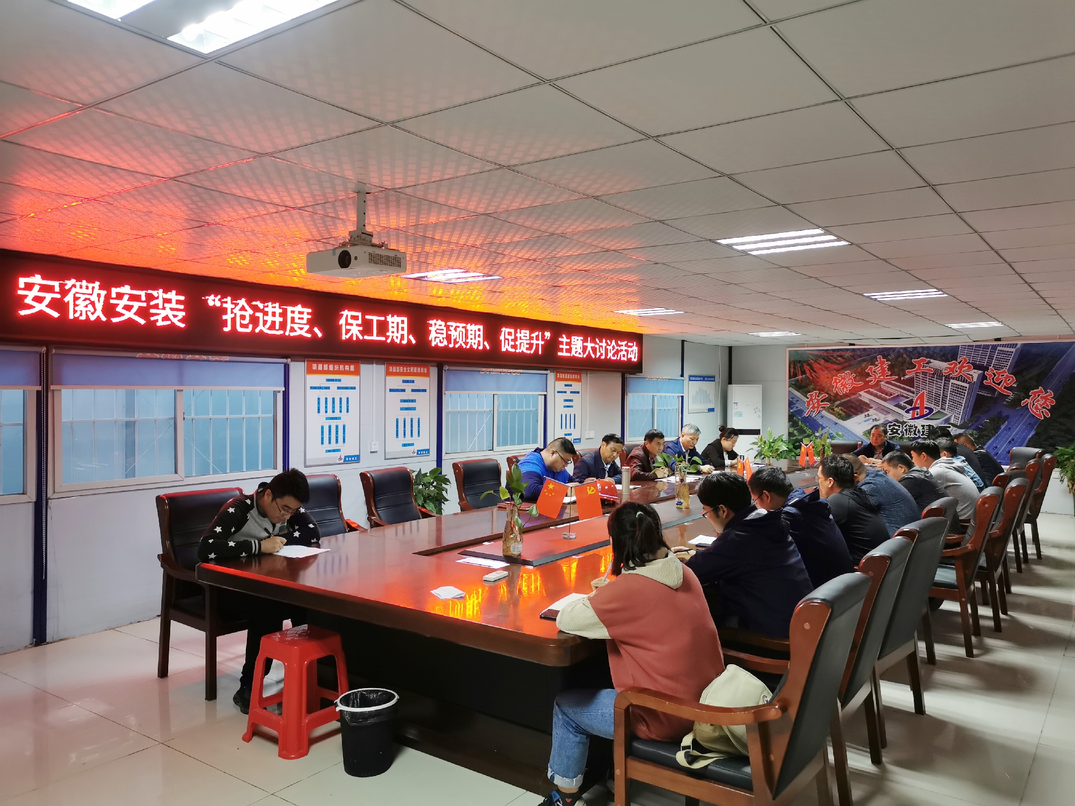為認(rèn)真貫徹集團(tuán)公司“搶進(jìn)度、保工期、穩(wěn)預(yù)期、促提升”勞動競賽活動精神,10月10日下午,安徽安裝公司圍繞“不能按時交工為恥辱”的履約意識,在阜陽潁東區(qū)中醫(yī)院項(xiàng)目部會議室,組織開展“搶進(jìn)度、保工期、穩(wěn)預(yù)期、促提升”主題大討論活動。公司副總經(jīng)理高飛,紀(jì)委書記、工會主席李寬旭,總工程師吳繼成,公司相關(guān)部門負(fù)責(zé)人,房建分公司領(lǐng)導(dǎo)班子成員,項(xiàng)目經(jīng)理、技術(shù)負(fù)責(zé)人等共計20余人參加會議,會議由李寬旭主持。