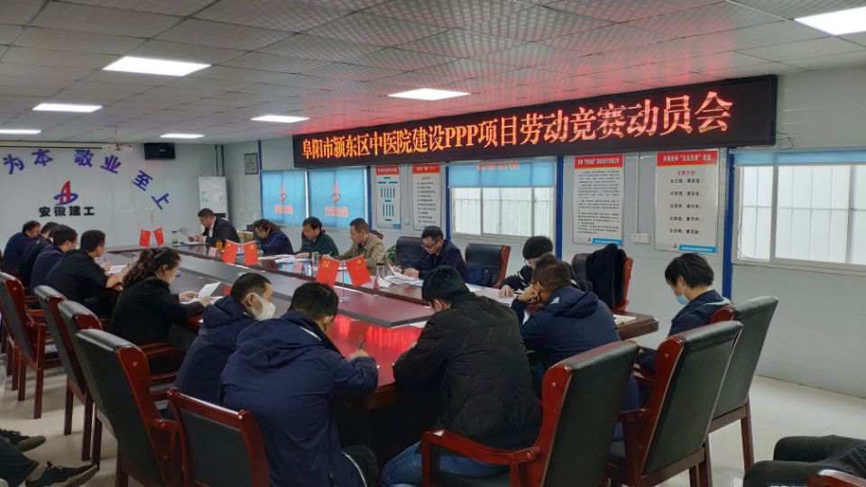 4月8日下午,阜陽市潁東區(qū)中醫(yī)院建設(shè)PPP項(xiàng)目部召開2020年勞動(dòng)競賽動(dòng)員會(huì)。公司黨委書記、董事長胡六中,副總經(jīng)理高飛,紀(jì)委書記、工會(huì)主席李寬旭及公司相關(guān)部門人員、房建(裝飾)分公司班子成員及項(xiàng)目部員工參會(huì),會(huì)議由分公司黨支部副書記張曼主持。