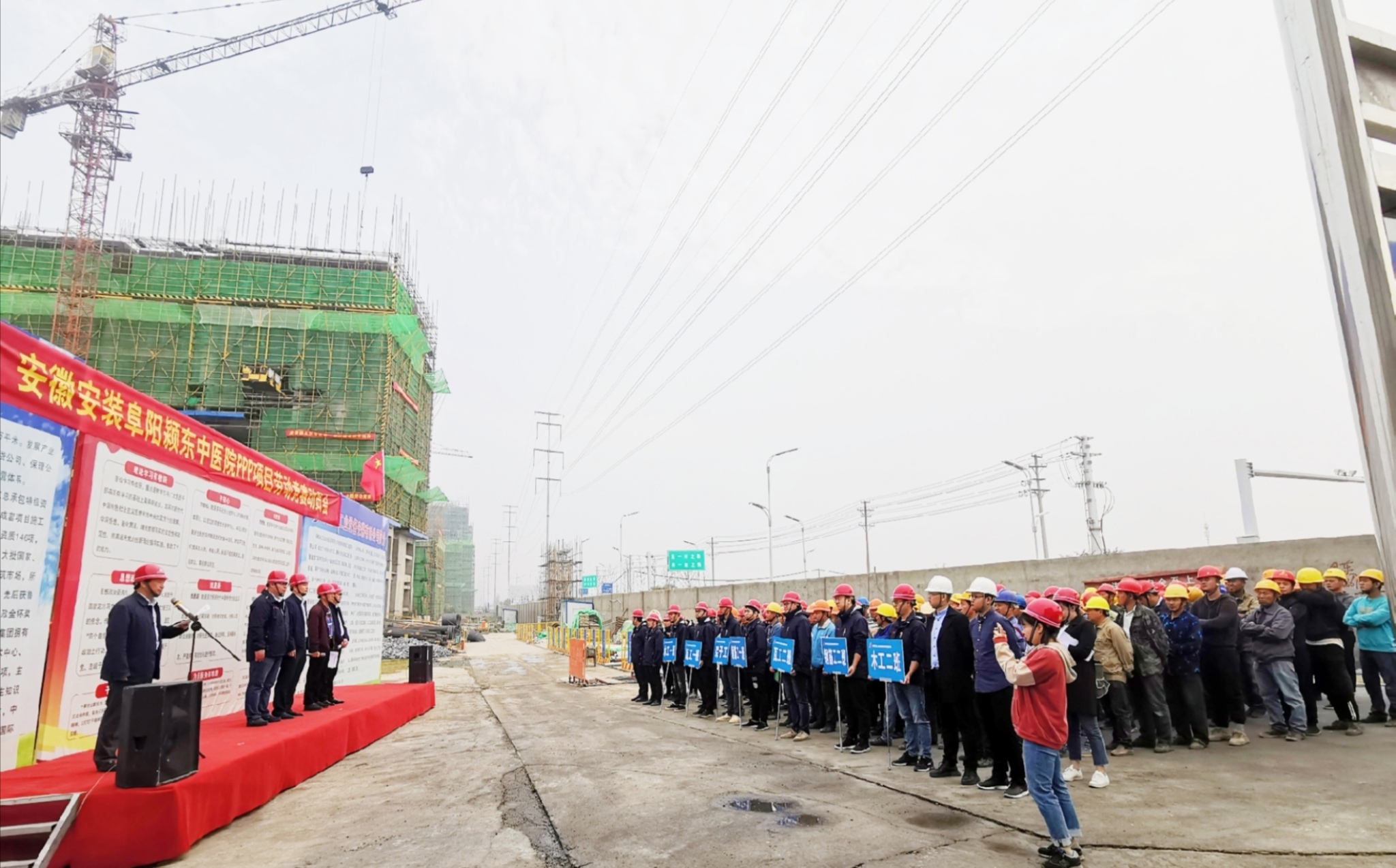 為確保年度各項目目標任務順利完成,貫徹落實集團公司開展“搶進度、保工期、穩(wěn)預期、促提升”為主題勞動競賽活動精神,2019年10月11日上午,安徽安裝召開阜陽潁東區(qū)中醫(yī)院PPP項目“大干四季度”勞動競賽動員大會。公司副總經(jīng)理高飛,紀委書記、工會主席李寬旭,總工程師吳繼成,公司相關部門負責人、項目管理人員和施工班組共120多人參加了競賽動員會。