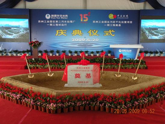 2009年5月20日,蘇州工業(yè)園區(qū)第二污水處理廠一期工程舉行試運(yùn)行慶典,江蘇省環(huán)保廳廳長、蘇州市副市長、蘇州工業(yè)園區(qū)區(qū)長等出席慶典儀式。公司總經(jīng)理王軍邦應(yīng)邀出席儀式。