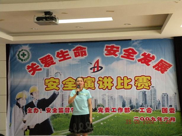 我公司選派的參賽選手姚春靜同志,以一場“生命之歌、安全之路”的精彩演講,博得現(xiàn)場聽眾的陣陣掌聲,最終獲得了一等獎的好成績。