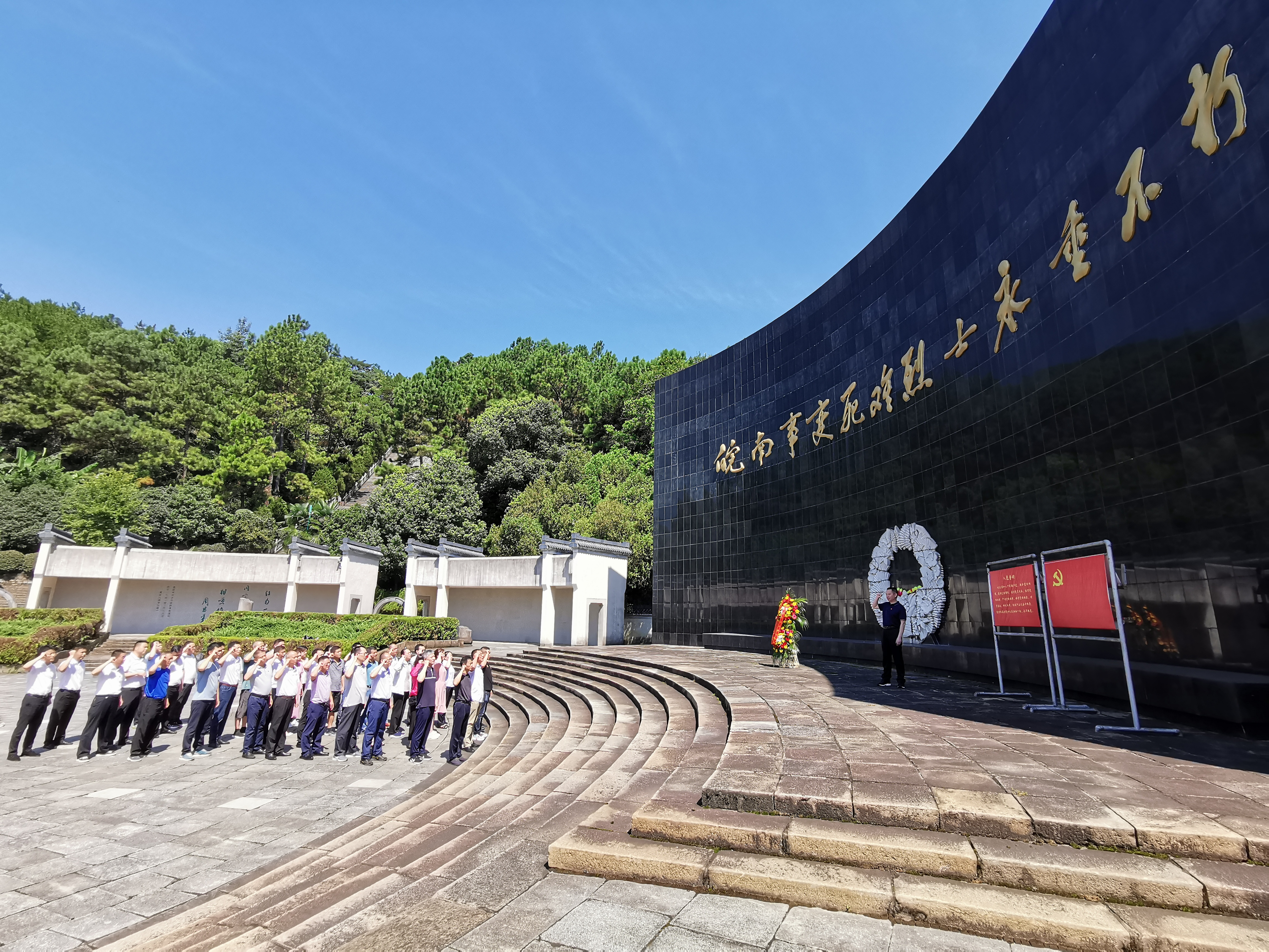 在莊嚴(yán)肅穆的皖南事變烈士陵園內(nèi),大家認(rèn)真聽(tīng)取講解員的講解,詳細(xì)了解新四軍發(fā)展壯大、英勇抗日的光輝歷程,在“皖南事變死難烈士永垂不朽”紀(jì)念碑下,在低沉肅穆的哀樂(lè)聲中,向烈士三鞠躬、默哀。并向英勇?tīng)奚牧沂總兙传I(xiàn)花籃,同志們莊嚴(yán)的舉起右拳,重溫了入黨誓詞。在新四軍軍部舊址,一件件珍貴的文物、一幅幅生動(dòng)的照片、一段段感人的事跡讓大家仿佛置身于那戰(zhàn)火紛飛的年代,深刻感受到新四軍波瀾壯闊的戰(zhàn)斗歷史,親身感受到革命先輩們?yōu)楦锩硐霋侇^顱灑熱血的獻(xiàn)身精神。