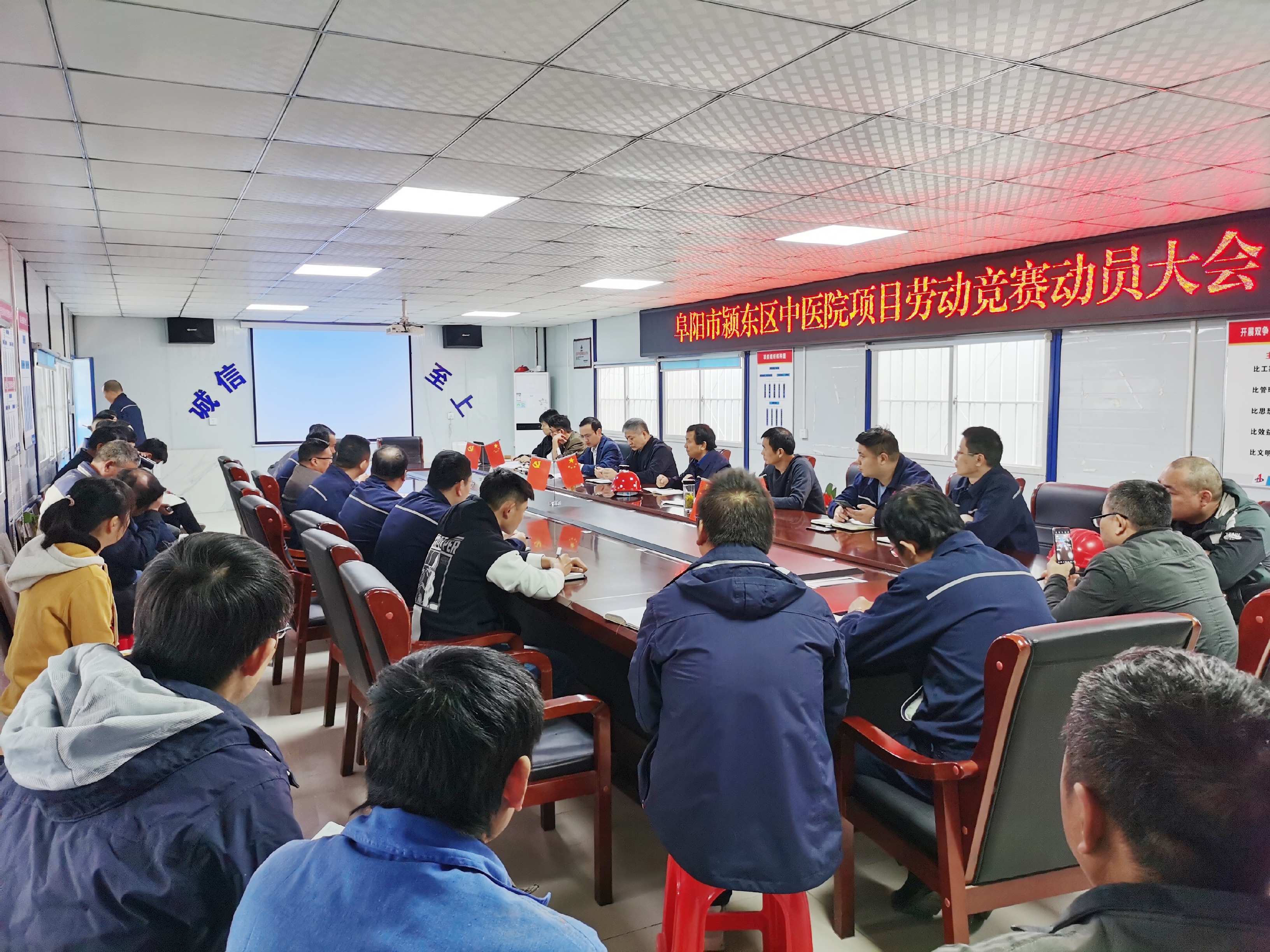 為確保年度各目標任務順利完成,貫徹落實集團公司開展“戰(zhàn)疫情、搶工期、保目標、促超產(chǎn)”為主題勞動競賽活動精神,2020年11月5日上午,安徽安裝召開阜陽潁東區(qū)中醫(yī)院建設PPP項目“大干90天,確保2021年春節(jié)前二層以上工程量全部完工”勞動競賽動員會。公司副總經(jīng)理高飛,紀委書記、工會主席李寬旭,總工程師吳繼成,公司相關部門負責人、項目管理人員和施工班組長共40多人參加了競賽動員會。