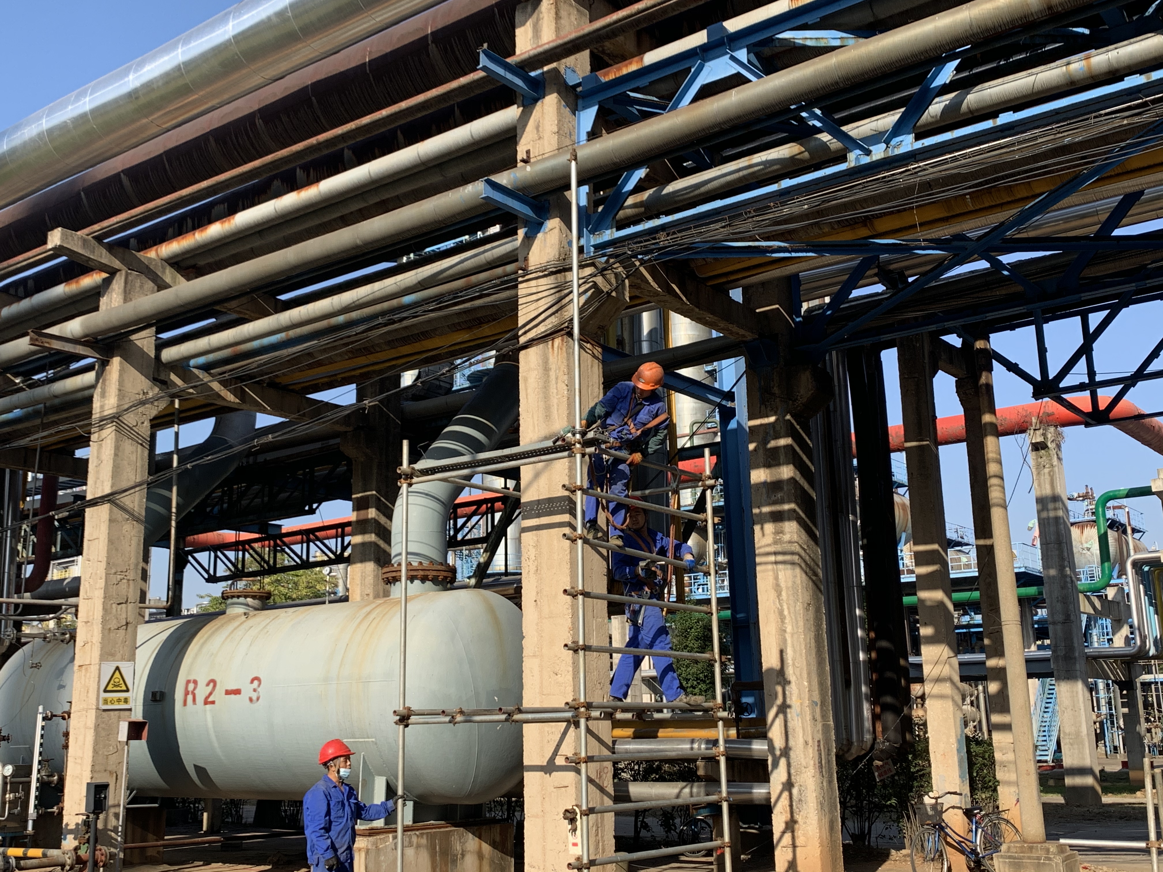 安慶石化低二腈線隱患處理項(xiàng)目在茅青路液化氣罐路口低Ⅱ線分支起至腈綸西圍墻內(nèi)界區(qū),對(duì)原有管道拆除換新。目前施工各項(xiàng)工作均已完成并驗(yàn)收,相關(guān)作業(yè)物資已經(jīng)清理完畢,做好拆除腳手架前的各項(xiàng)準(zhǔn)備,按自上而下先裝者后拆,后裝者先拆,逐步拆除,一步一清。