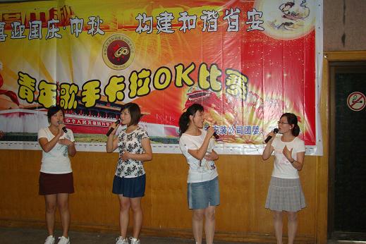 為慶祝新中國成立60周年暨傳統(tǒng)中秋佳節(jié),推動企業(yè)文化建設(shè),9月4日下午,由公司團委、工會共同舉辦的以“喜迎國慶·中秋 構(gòu)建和諧省安”為主題的青年歌手卡拉OK大賽在公司職工之家隆重舉行。來自公司機關(guān)、項目部及各分公司選派的18名選手參加了比賽。集團公司機關(guān)黨委書記宋曉英、工會女工委主任胡愛紅、人力資源部主任胡建英等應(yīng)邀擔(dān)任本次比賽評委。公司領(lǐng)導(dǎo)及廣大職工踴躍到場觀看、鼓勁。
