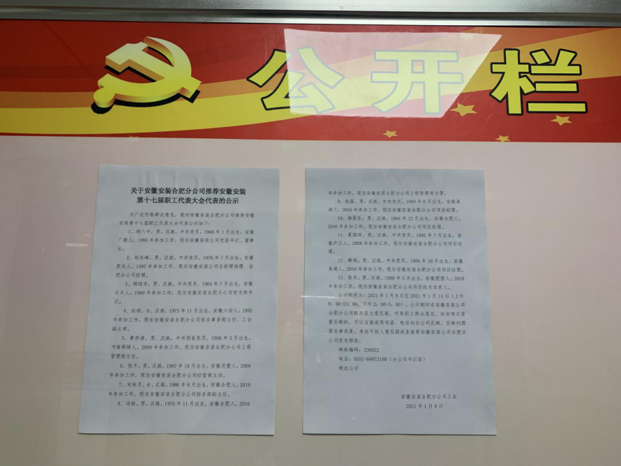 近日,安徽安裝公司工會(huì)組織開展公司第十七屆職工代表大會(huì)職工代表換屆選舉工作。