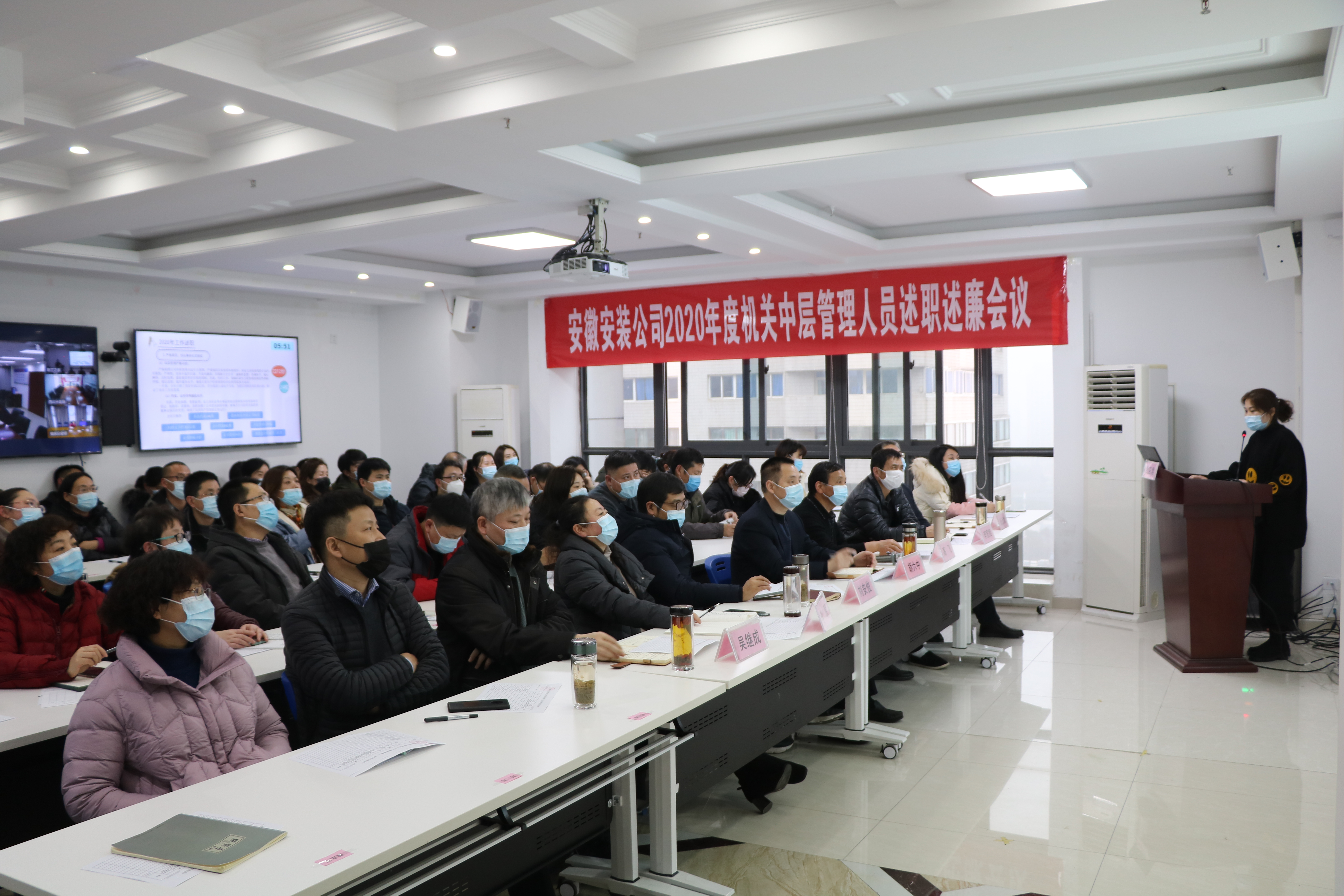 1月25日下午,安徽安裝公司召開2020年度機關中層管理人員述職述廉會議。公司領導班子成員、機關中層管理人員、分公司黨政負責人、機關部門員工代表共60余人參加會議,會議采取現(xiàn)場加視頻會議方式召開,公司黨委書記、董事長胡六中主持會議。