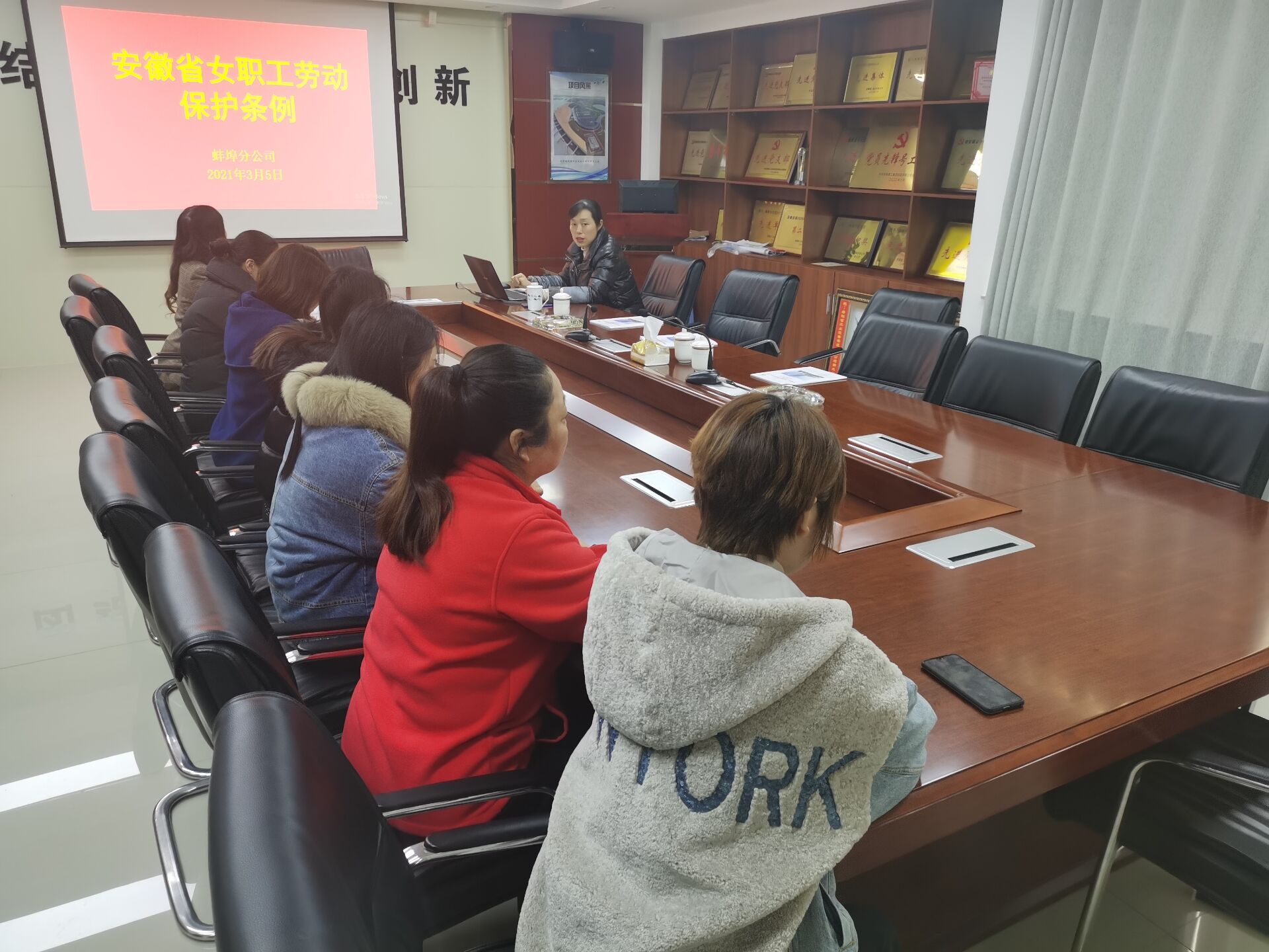 陽(yáng)春三月,百草初醒,萬(wàn)木崢嶸,值此第“111”個(gè)三八國(guó)際勞動(dòng)?jì)D女節(jié)來(lái)臨之際,3月5日下午,蚌埠分公司工會(huì)開展了《女職工勞動(dòng)保護(hù)特別規(guī)定》知識(shí)講座活動(dòng)。講座由分公司黨支部書記程茂麗組織,分公司全體女職工聆聽講座。