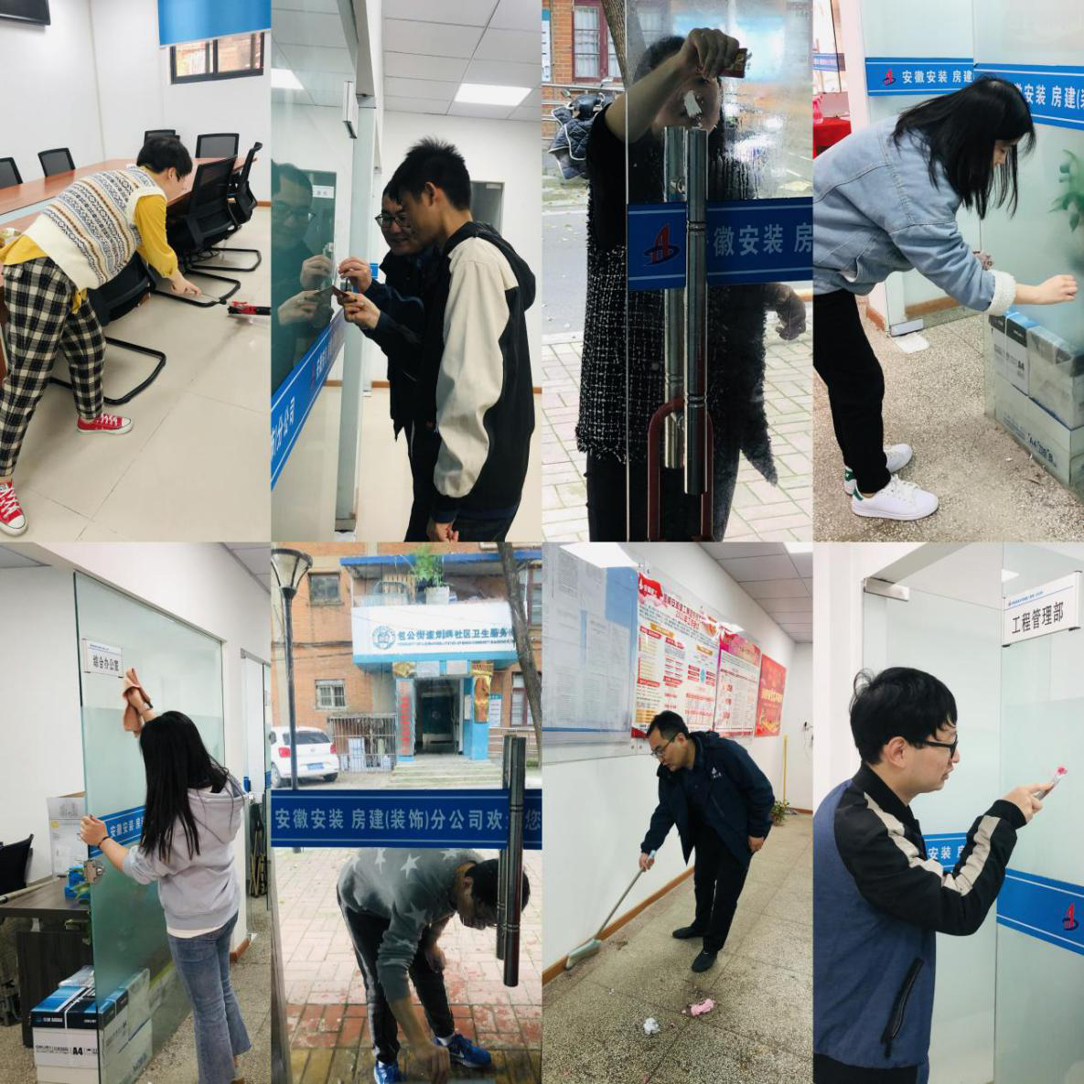 擦洗門窗,打掃會(huì)議室、整理辦公場所,修繕公共設(shè)施等,員工們拿起掃帚、簸箕等各種工具,大家分工明確,迅速行動(dòng),團(tuán)結(jié)協(xié)作,一片熱火朝天的忙碌景象,掀起了衛(wèi)生整治活動(dòng)的高潮。經(jīng)過大家的努力,辦公區(qū)干凈整潔,煥然一新。