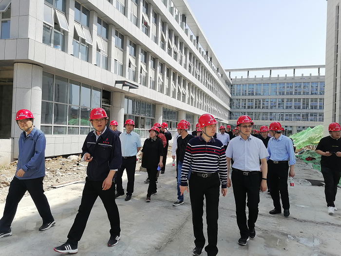 與會(huì)人員首先現(xiàn)場(chǎng)觀摩了阜陽(yáng)市潁東中醫(yī)院項(xiàng)目,在項(xiàng)目經(jīng)理徐明東的講解和帶領(lǐng)下,大家邊走邊看邊交流,詳細(xì)了解了項(xiàng)目實(shí)施情況、施工的重難點(diǎn)、進(jìn)度管控措施。