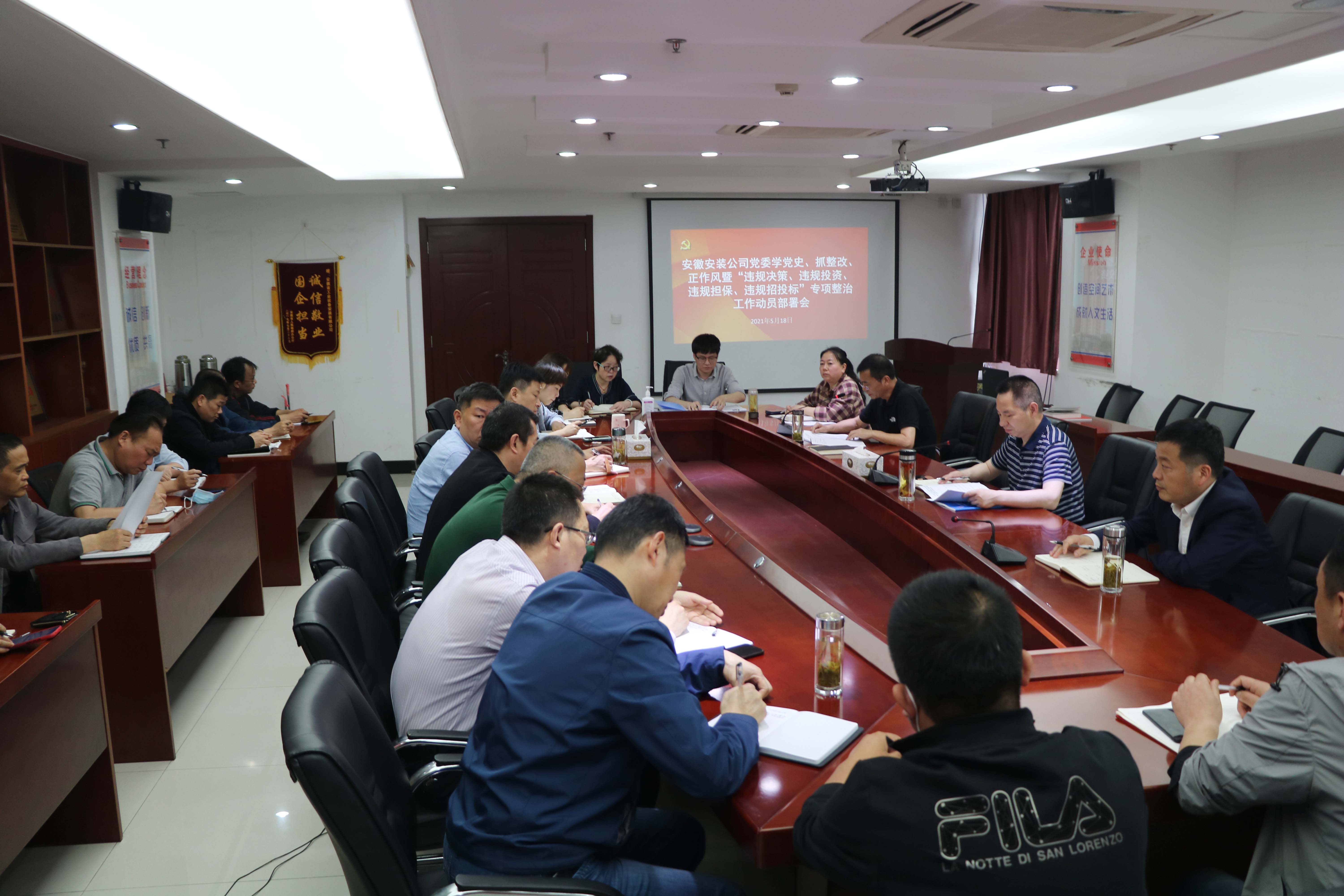 5月18日下午,安徽安裝黨委召開學黨史、抓整改、正作風暨“違規(guī)決策、違規(guī)投資、違規(guī)擔保、違規(guī)招投標”專項整治動員部署會議,公司領(lǐng)導班子成員、機關(guān)部門負責人、所屬各分公司領(lǐng)導班子成員參加會議,會議以現(xiàn)場加視頻形式召開,公司黨委書記、董事長胡六中主持會議并講話。
