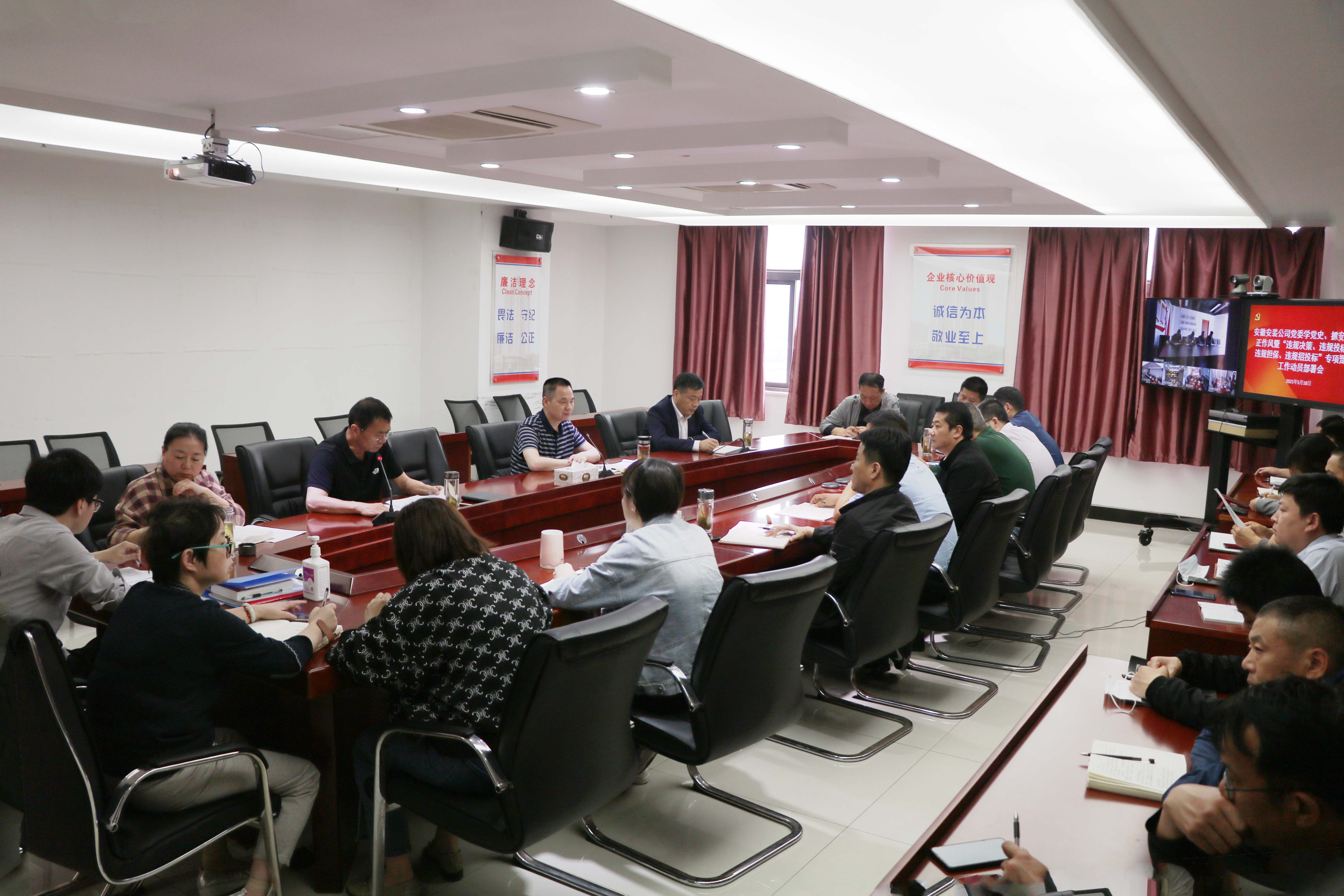 5月18日下午,安徽安裝黨委召開疫情防控專題部署會(huì)議,公司領(lǐng)導(dǎo)班子成員、機(jī)關(guān)部門負(fù)責(zé)人、所屬各分公司領(lǐng)導(dǎo)班子成員參加會(huì)議,會(huì)議以現(xiàn)場加視頻形式召開,公司黨委書記、董事長胡六中主持會(huì)議并講話。