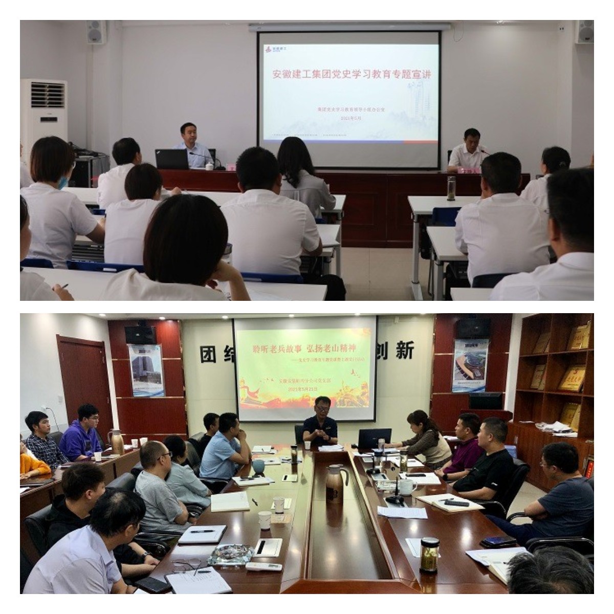 專題宣講課堂。5月27日下午,股份公司黨委委員、副總經(jīng)理黃代,帶領(lǐng)集團黨史學(xué)習(xí)教育第十七宣講組成員赴安徽安裝公司開展黨史學(xué)習(xí)教育專題宣講。公司領(lǐng)導(dǎo)班子成員分赴西安、阜陽、蚌埠、合肥等地區(qū)分公司及項目一線作黨史學(xué)習(xí)教育專題黨課報告。進一步將黨史學(xué)習(xí)“送學(xué)”到一線,確保習(xí)總書記在黨史學(xué)習(xí)教育動員大會上的講話精神落實到基層,確保公司自上而下扎實開展好黨史學(xué)習(xí)教育,將黨史學(xué)習(xí)教育的成果轉(zhuǎn)化為干事創(chuàng)業(yè)的強大動力。蚌埠分公司黨支部組織開展“聆聽老兵故事 弘揚老山精神”黨史學(xué)習(xí)教育專題黨課。邀請曾參加過對越自衛(wèi)反擊戰(zhàn)的退伍老兵為大家上了一堂別開生面的黨課,講述用鮮血和生命捍衛(wèi)國家領(lǐng)土和民族尊嚴(yán)的崢嶸歲月。