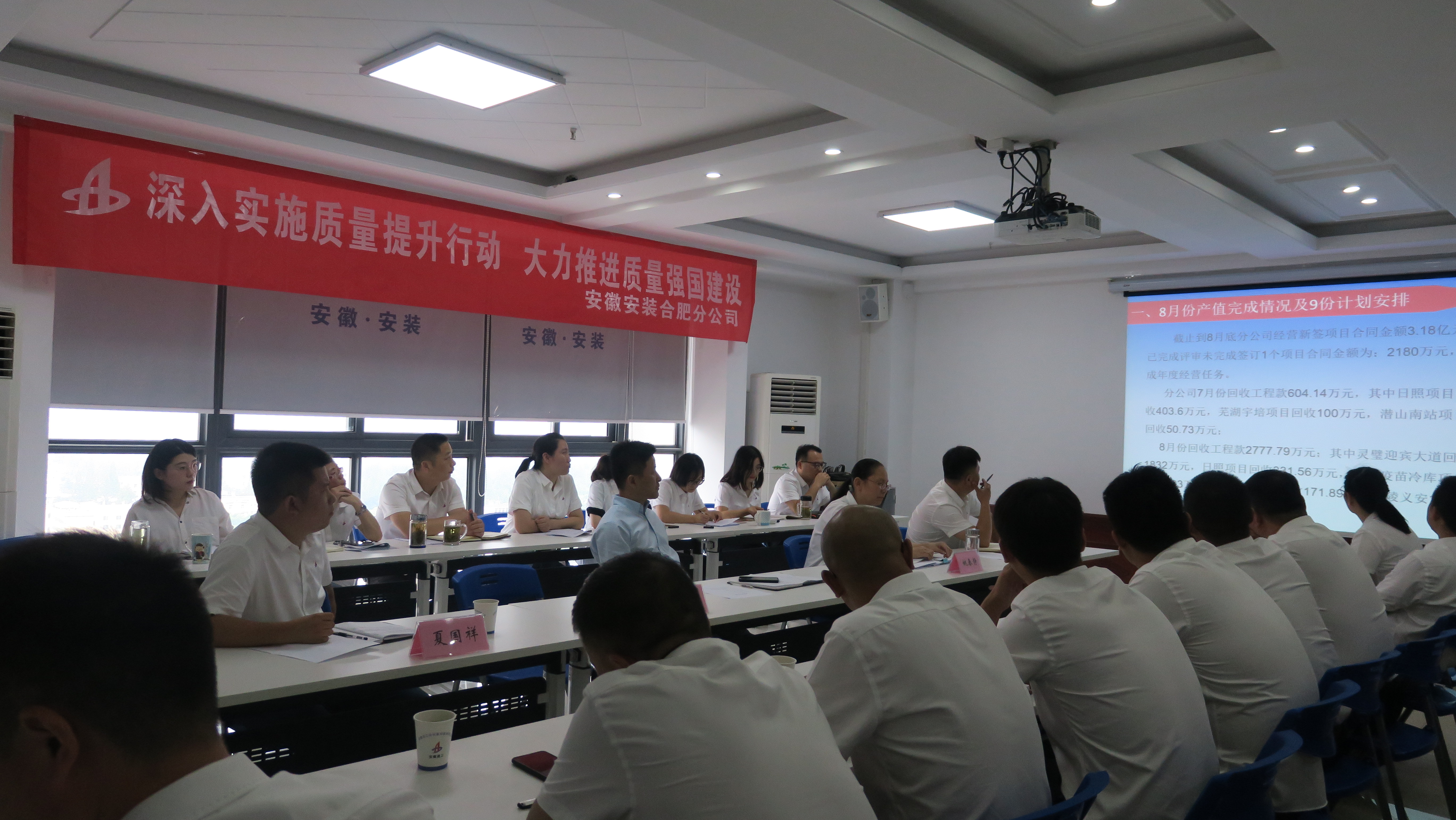 9月4日下午,合肥分公司召開(kāi)了2021年9 月份生產(chǎn)、安全、經(jīng)營(yíng)暨“質(zhì)量月”動(dòng)員會(huì)議。分公司領(lǐng)導(dǎo)班子成員、所屬各項(xiàng)目經(jīng)理、機(jī)關(guān)全體員工40余人參會(huì),會(huì)議由工程管理部副主任馮慶捻主持。