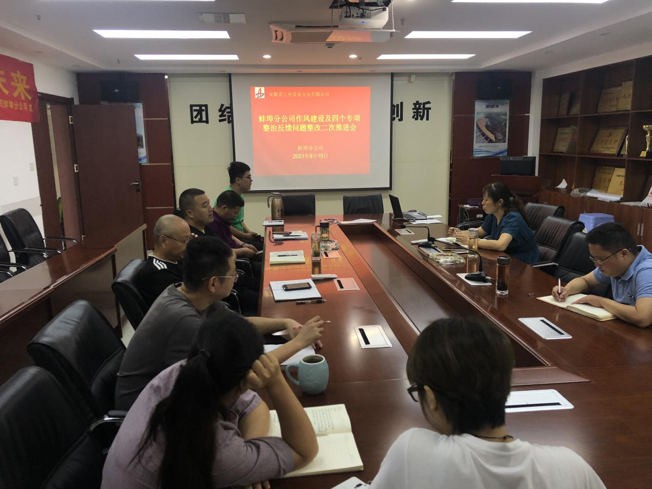 9月15日上午,蚌埠分公司黨支部召開“作風(fēng)建設(shè)及四個專項整治反饋問題整改二次推進會”。分公司支委委員、班子成員、工管部、財務(wù)部、經(jīng)營部、綜合辦等相關(guān)部門負責(zé)人、具辦人員參加會議,會議由黨支部書記程茂麗主持。