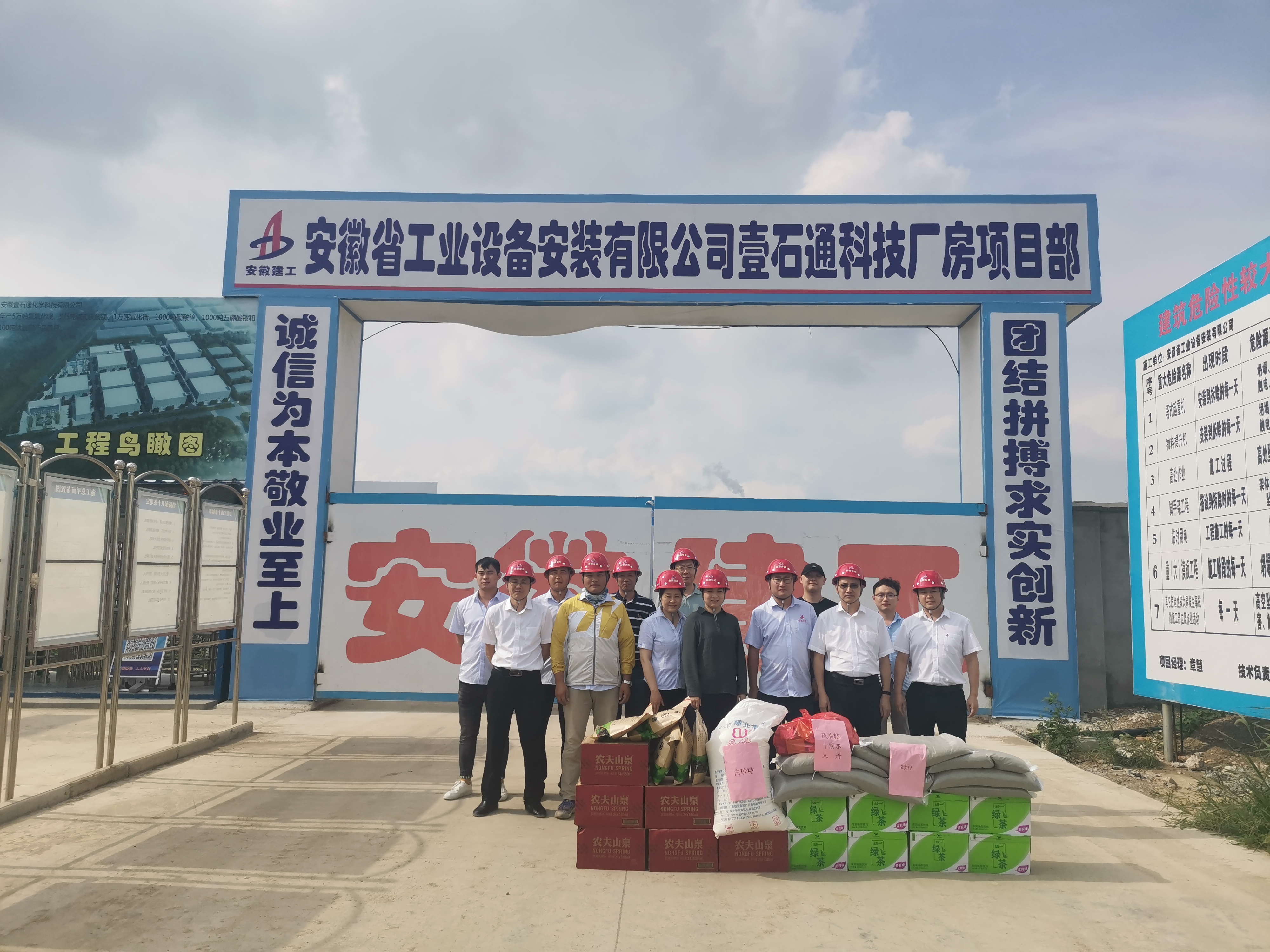 公司工會帶著白糖、綠豆、茶葉、飲料、藥品等防暑降溫物品,先后來到安慶石化熱電部廠際邊界降噪治理完善項目、安慶石化Ⅰ循噪音治理項目、宿州新宇藥業(yè)微生物藥物生產(chǎn)建設(shè)項目一期工程項目、靈璧縣迎賓大道改造工程專業(yè)承包(EPC)項目、蚌埠臨港智能制造產(chǎn)業(yè)園項目及定遠壹石通化學(xué)科技廠房項目,給廣大一線職工送去工會組織的關(guān)愛。