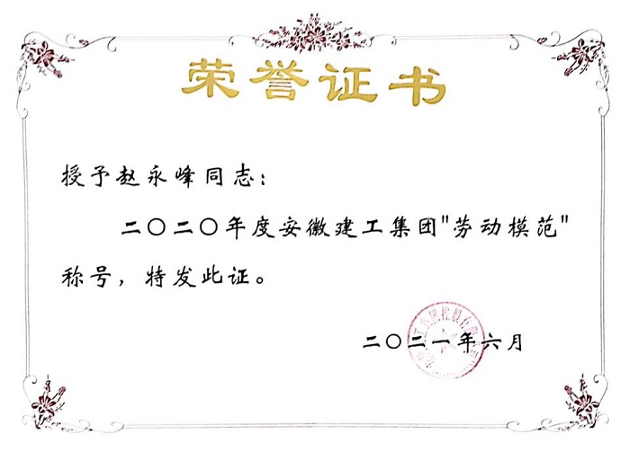 2019年3月,根據(jù)安徽安裝公司拓展市場(chǎng)、加快發(fā)展的工作要求,趙永峰勇挑重?fù)?dān),擔(dān)負(fù)起了合肥分公司“開(kāi)拓市場(chǎng)一片天”的重任,團(tuán)結(jié)帶領(lǐng)分公司班子成員和全體員工立足新起點(diǎn)、整裝再出發(fā),努力為實(shí)現(xiàn)分公司新一輪大發(fā)展而不懈奮斗,取得的可喜成績(jī)得到了領(lǐng)導(dǎo)和員工們的一致認(rèn)可和稱贊。受到安徽建工集團(tuán)及安徽省工業(yè)設(shè)備安裝有限公司的表彰,在2021年7月1日-2日召開(kāi)的安徽建工集團(tuán)控股有限公司二屆一次職工代表大會(huì)暨“七一”表彰會(huì)上,趙永峰同志作為集團(tuán)勞動(dòng)模范代表光榮的上臺(tái)授獎(jiǎng)。