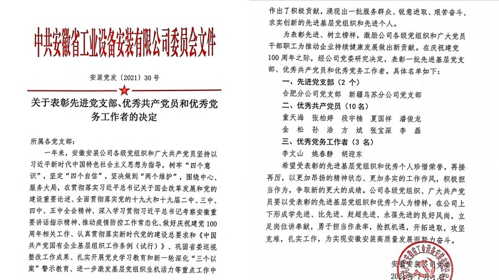 今年以來(lái),趙永峰同志以黨史學(xué)習(xí)教育和慶祝中國(guó)共產(chǎn)黨成立100周年為契機(jī),以集團(tuán)黨建“領(lǐng)航計(jì)劃”為抓手,創(chuàng)新型開(kāi)展支部黨建工作,多措并舉,勠力同心,真抓實(shí)干,積極探索項(xiàng)目黨建工作新載體、新途徑,以深入開(kāi)展創(chuàng)先爭(zhēng)優(yōu)“黨員示范崗”等主題實(shí)踐活動(dòng)為載體,以“我為群眾辦實(shí)事”實(shí)踐活動(dòng)帶領(lǐng)支部班子成員創(chuàng)造性地開(kāi)展一系列黨建工作,用實(shí)際行動(dòng)踐行初心使命,用真抓實(shí)干檢驗(yàn)黨史學(xué)習(xí)教育成效。積極發(fā)揮了“一名黨員就是一面旗幟,一個(gè)支部就是一座堡壘”的重要作用。他所在合肥分公司被建工集團(tuán)授予“先進(jìn)集體”光榮稱號(hào),合肥分公司黨支部被安徽省工業(yè)設(shè)備安裝有限公司黨委評(píng)為“先進(jìn)黨支部”。趙永峰同志榮獲安徽建工集團(tuán)“勞動(dòng)模范”等多項(xiàng)榮譽(yù)稱號(hào)。