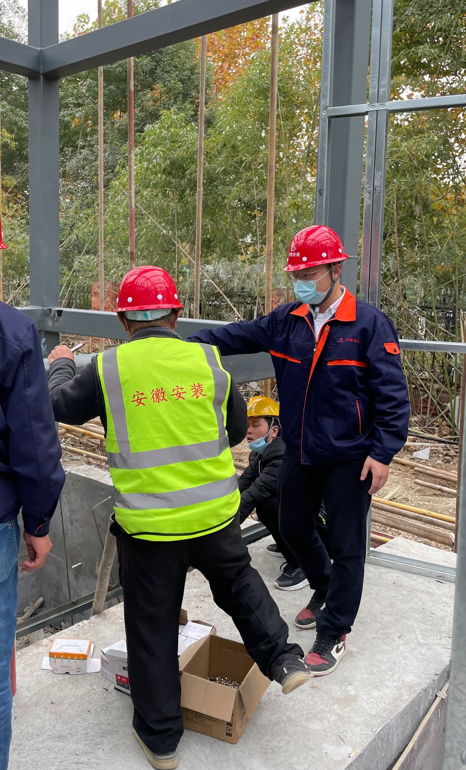 ·項目安全員吳萌萌,自項目開工以來,今天已是他夜晚通宵加班的第7天了。“項目安全問題不容忽視,尤其是搶工的項目,大家都急,這個時候保障安全更為重要”,作為項目上最年輕的同志,他清秀的臉龐上滿是責任與擔當。由于項目現(xiàn)場工期緊,鋼筋綁扎、澆筑混凝土、安裝主鋼構(gòu)、壓型金屬板等工作都需要夜間搶工進行,夜間施工視線條件差,對安全管理的要求更高,吳萌萌主動承擔起夜間安全管理的工作任務(wù),整夜守在項目現(xiàn)場,嚴格做好施工現(xiàn)場的各項安全工作。深秋時節(jié),早晚溫差大,晚上很是寒涼,干活累了餓了,夜間就把晚上吃剩的盒飯就著冰涼的礦泉水接著吃了,他一如既往,在項目一線堅持蹲守,從黑夜到黎明,絲毫不敢放松。