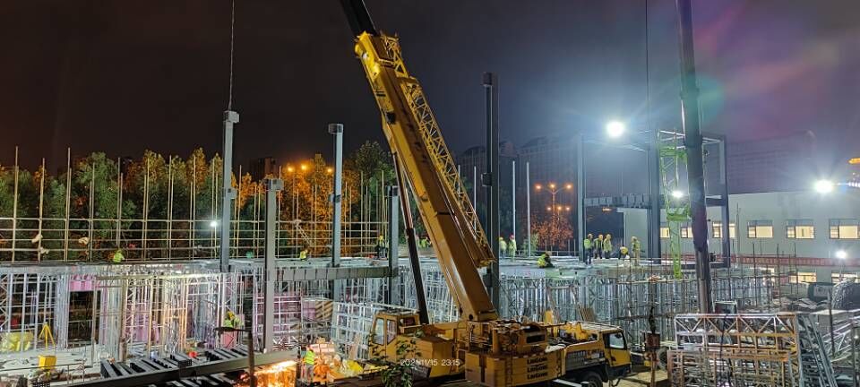 “開局即是決戰(zhàn),起步就要沖刺”,在項目現(xiàn)場,我們能感受到的是項目全體職工心往一處想、勁往一處使的勇氣與信心。截至11月16日,該項目已完成二層樓板壓型鋼板安裝,二層樓板混凝土澆筑完成50%,二層墻板繼續(xù)作業(yè),墻體內(nèi)水電預(yù)埋已經(jīng)穿插開始進行。一層墻板內(nèi)水電預(yù)埋基本完成,開始一層吊頂內(nèi)水電暖通安裝工作。