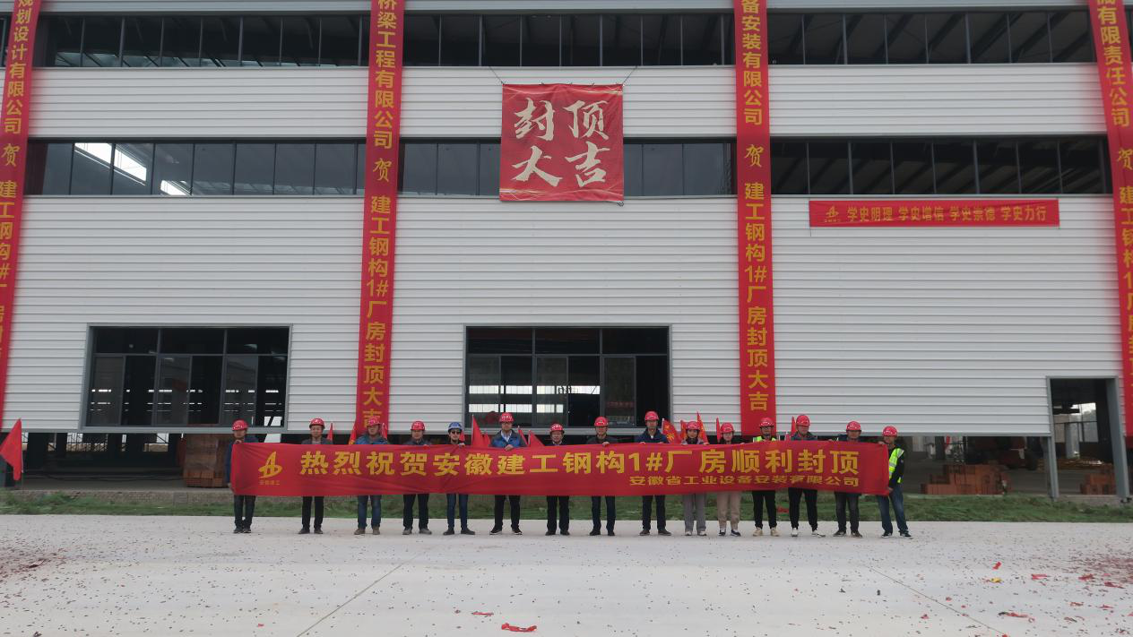 大干四季度,起航再?zèng)_鋒。12月8日上午,隨著最后一片屋面板的鋪設(shè)完成,合肥分公司建工鋼構(gòu)項(xiàng)目1#廠房順利封頂,標(biāo)志著建工鋼構(gòu)項(xiàng)目主體施工全部完成。安徽路橋橋梁分公司黨總支書記、副總經(jīng)理劉振嶺、公司總經(jīng)理助理、合肥分公司黨支部書記、經(jīng)理趙永峰等出席封頂儀式。與項(xiàng)目部全體員工共同見(jiàn)證這一重要時(shí)刻。