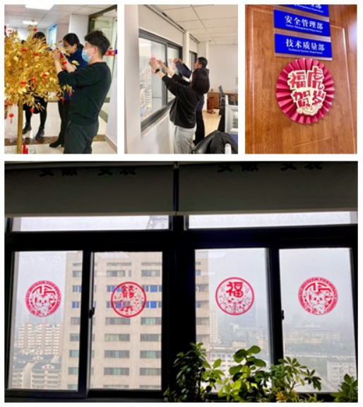 金牛送舊千家樂,玉虎迎新萬戶歡,春節(jié)將至,為豐富職工文化生活,營造歡樂、祥和、平安、喜慶、和諧的節(jié)日氣氛,合肥分公司工會提前準(zhǔn)備了喜慶的新年裝飾、對聯(lián)、窗花等節(jié)慶用品,組織團(tuán)員青年、機(jī)關(guān)員工將辦公室裝扮一新,并將濃濃年味帶到了各個(gè)項(xiàng)目部現(xiàn)場。