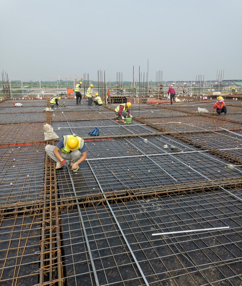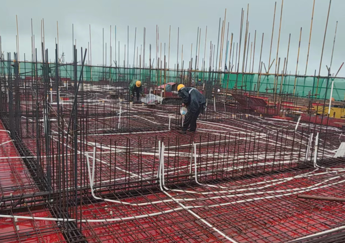 圖為舒城青墩小區(qū)項目高層住宅及地庫的水電及消防工程安裝工程正在搶抓管線預埋。