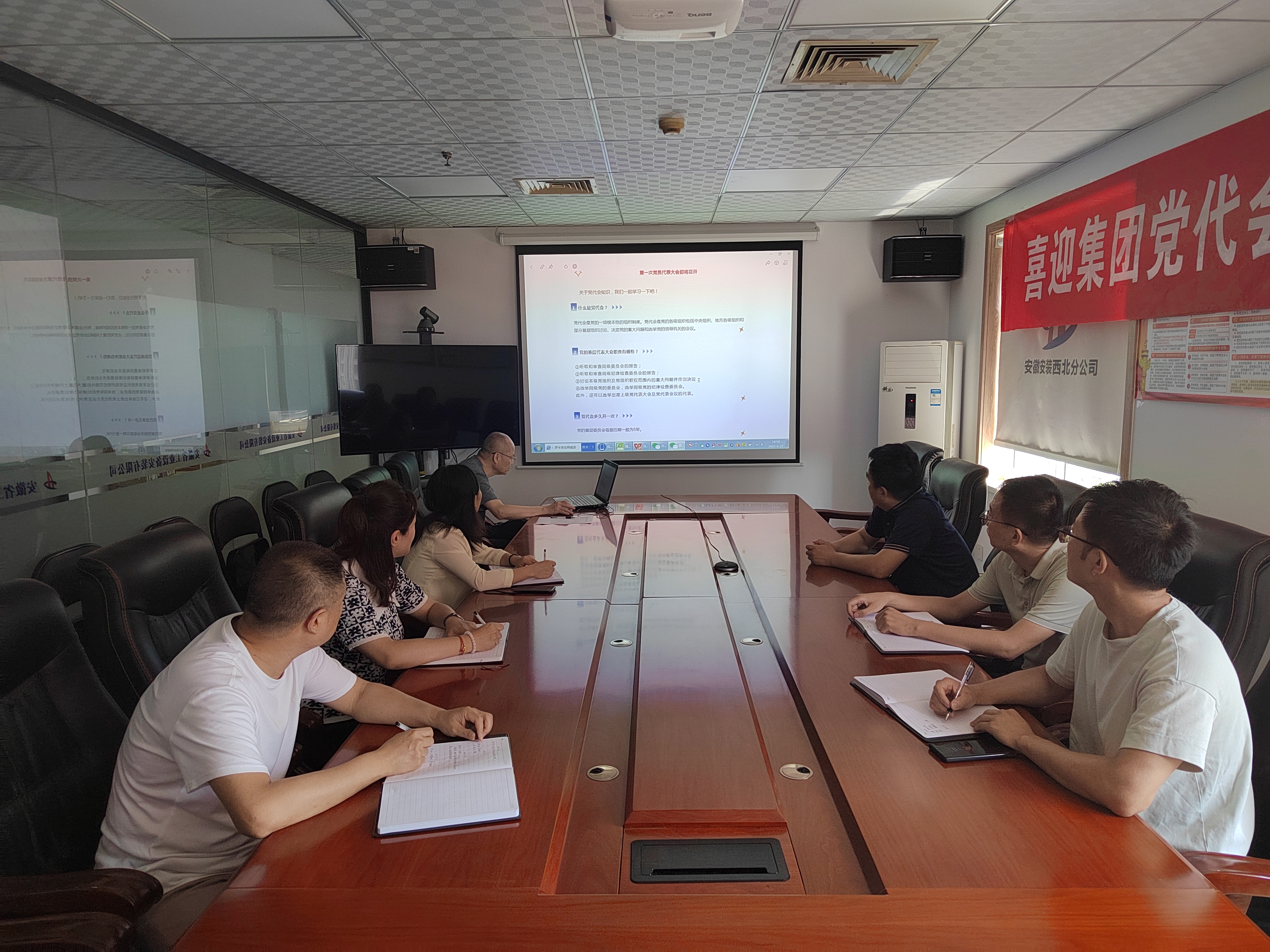 6月27日,陜西分公司組織召開(kāi)專題學(xué)習(xí)會(huì),集中學(xué)習(xí)安徽建工集團(tuán)第一次黨代會(huì)精神。會(huì)議由分公司黨支部書(shū)記江輝主持,分公司領(lǐng)導(dǎo)班子成員、機(jī)關(guān)黨員干部職工參加此次會(huì)議。