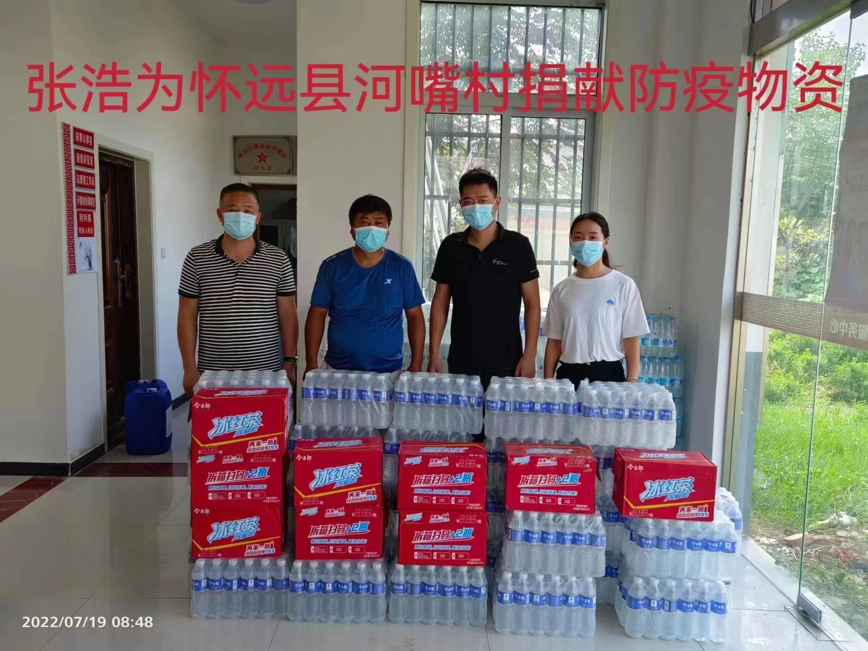 在志愿者服務期間,他親眼目睹了一線防控人員的辛苦和特殊時期物資籌措的不易,于是自費1000余元購買了礦泉水、冰紅茶等一批防疫保障物資,主動捐贈給河嘴村村委會,以實際行動助力一線抗擊疫情。