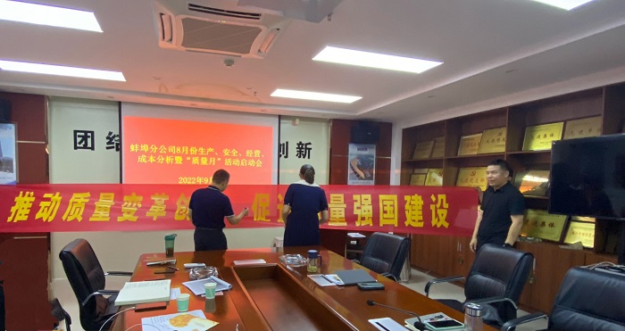 9月1日下午,蚌埠分公司召開8月份生產、安全、經營、成本分析暨“質量月”活動啟動會,分公司領導班子成員、部門負責人及各項目經理等參會。