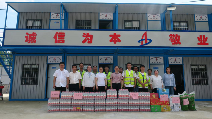 公司工會(huì)先后來(lái)到岳西中學(xué)建設(shè)項(xiàng)目(一期)安裝工程項(xiàng)目、中石化安慶分公司煉油轉(zhuǎn)化工200噸/小時(shí)污水汽提裝置項(xiàng)目、舒城第一中學(xué)遷建項(xiàng)目、四水廠DN1800、DN1400供水管道遷建工程管網(wǎng)項(xiàng)目、花園大道(徽州大道-包河大道)道路工程項(xiàng)目、定遠(yuǎn)壹石通化學(xué)科技廠房項(xiàng)目、凱盛科技超薄柔性玻璃(UTG)二期5#、6#車間及配套設(shè)施工程項(xiàng)目,給廣大一線職工送去白糖、綠豆、礦泉水、飲料、藥品等防暑降溫物品,將工會(huì)組織的關(guān)心關(guān)愛(ài)傳遞給項(xiàng)目職工。