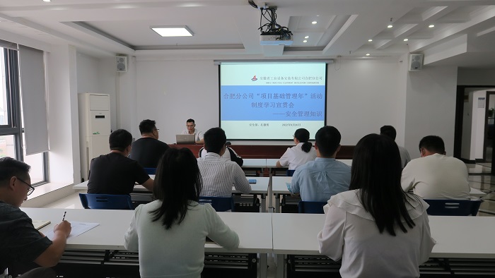 根據(jù)合肥分公司“項(xiàng)目管理年”活動(dòng)學(xué)習(xí)培訓(xùn)計(jì)劃安排,9月20日下午,分公司組織開(kāi)展了第五期“項(xiàng)目管理年”活動(dòng)制度學(xué)習(xí)會(huì),由分公司安全管理部負(fù)責(zé)人孔微明講授安全管理相關(guān)知識(shí)。分公司領(lǐng)導(dǎo)班子成員、機(jī)關(guān)員工以及項(xiàng)目部安全員參會(huì)。
