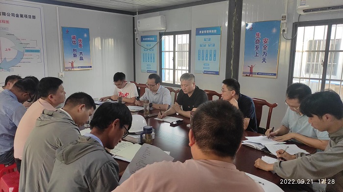 9月21日下午,公司總工程師吳繼成一行赴蚌埠分公司霍邱縣金巢礦業(yè)有限責(zé)任公司選鐵選云母技改工程項(xiàng)目開(kāi)展三季度聯(lián)合檢查。公司總工辦、工程管理部、安全管理部、成本合約部等部門負(fù)責(zé)人聯(lián)合檢查,蚌埠分公司黨支部書記、副經(jīng)理王偉,副經(jīng)理張斌、郭洋及項(xiàng)目部全體職工參加。