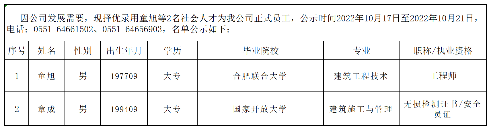 2022年擬錄用社會人才公示(2)