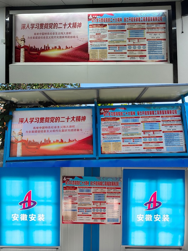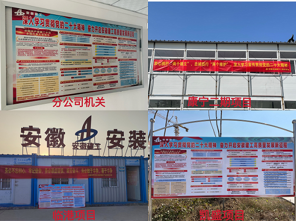 同時(shí),黨支部還在分公司機(jī)關(guān)、各在建項(xiàng)目分別制作了二十大專(zhuān)題展板和條幅,營(yíng)造了濃厚的學(xué)習(xí)氛圍。