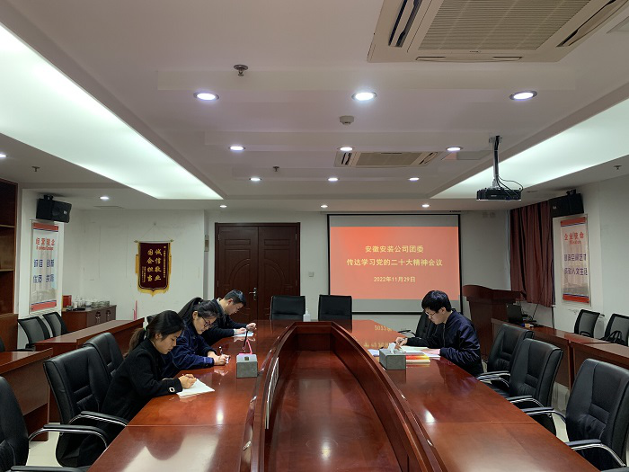 安徽安裝合肥分公司團支部組織團員青年召開會議,傳達學習黨的二十大精神,圍繞如何發(fā)揮共青團組織的政治功能、做好黨的理論“青年化”闡釋開展熱烈討論。