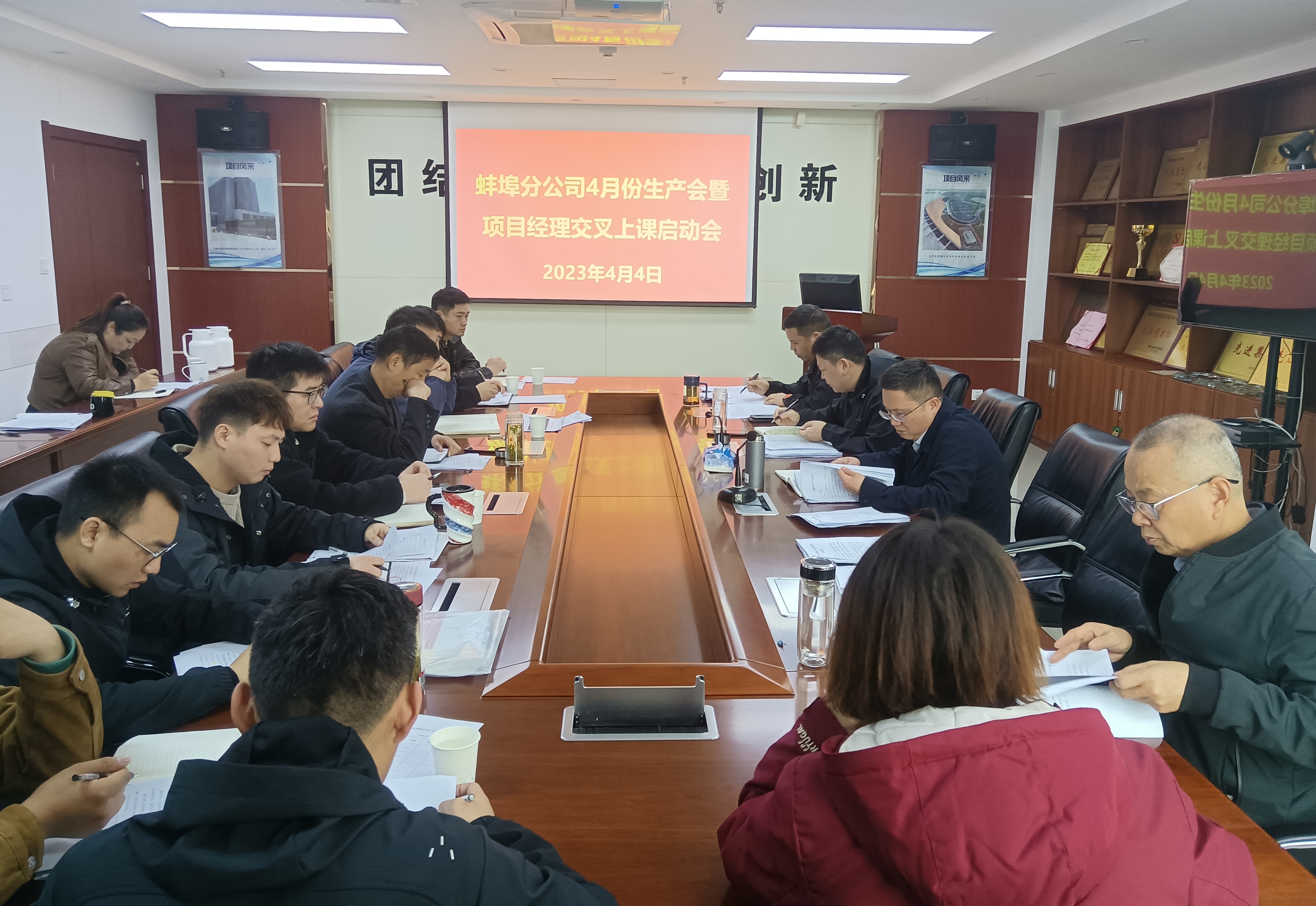 4月4日上午,蚌埠分公司召開4月份生產經營會暨項目經理交叉上課啟動會,分公司領導班子、各項目經理、機關各部門負責人、工管部全體人員參加會議,會議由分公司副經理郭洋主持。