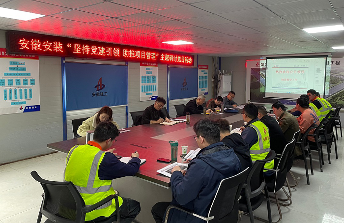 近日,安徽安裝公司黨委結(jié)合2023年一季度工程項(xiàng)目管理綜合檢查,到房建(裝飾)分公司阜南污水處理廠項(xiàng)目部和蚌埠分公司凱盛項(xiàng)目部組織開展了“堅(jiān)持黨建引領(lǐng) 助推項(xiàng)目管理”主題研討黨日活動(dòng)。公司黨委辦公室、工程管理部(安全管理部)、物資管理部、招標(biāo)辦公室、所屬分公司及項(xiàng)目部班子成員參加了此次活動(dòng)。
