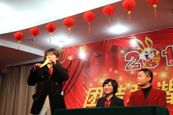 虎年喜結(jié)豐收果,兔歲欣開幸?;?。元月26日下午,“省安2011年春節(jié)聯(lián)歡會(huì)”在學(xué)苑大廈三樓多功能廳隆重舉行。建設(shè)廳副廳長王茂新、建管處副處長張行遠(yuǎn),集團(tuán)公司黨委書記張海平、副董事長李長斌、副總經(jīng)理戴良軍、紀(jì)委書記、工會(huì)主席劉振武、副總經(jīng)理王禮義、總法律顧問申玉恩、總經(jīng)理助理郭道真、副總會(huì)計(jì)師王曉軍及集團(tuán)有關(guān)部門負(fù)責(zé)人蒞臨晚會(huì)現(xiàn)場,與省安公司黨政領(lǐng)導(dǎo)班子、分公司負(fù)責(zé)人、各合作單位領(lǐng)導(dǎo)及公司全體新老員工200余人歡聚一堂,共度新春佳節(jié),共享新春喜悅。