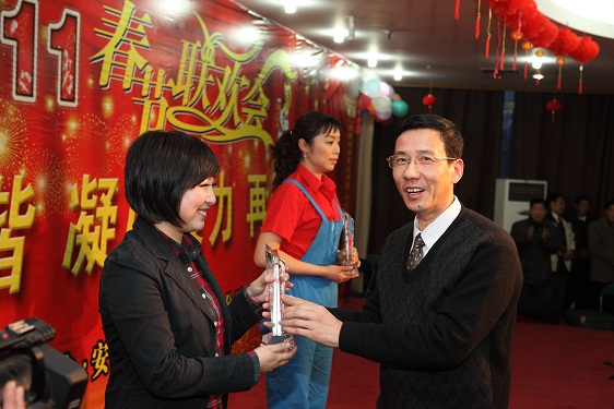 公司總經(jīng)理王軍邦代表公司黨政領(lǐng)導(dǎo)班子致新春賀詞,感謝一年來上級領(lǐng)導(dǎo)的大力支持和關(guān)懷,感謝全體員工的辛勤付出和熱愛。他說,過去的2010年里,在集團(tuán)公司的領(lǐng)導(dǎo)下,公司上下同心協(xié)力,完成產(chǎn)值10.08億元,各方面工作取得了優(yōu)異的成績,生產(chǎn)經(jīng)營快速發(fā)展,管理模式逐步成型,資源整合不斷優(yōu)化,文化載體日漸豐富,品牌效應(yīng)日漸凸顯,凝聚力和執(zhí)行力不斷提高,各項(xiàng)工作穩(wěn)步邁上了新臺階,在行業(yè)內(nèi)得到了充分的肯定,實(shí)現(xiàn)了“十一五”的完美收官。在“十二五”開局之年里,我們將緊密依托集團(tuán)公司領(lǐng)導(dǎo),以提高經(jīng)濟(jì)效益為重心,團(tuán)結(jié)協(xié)作,迎難而上,銳意進(jìn)取,共創(chuàng)2011事業(yè)輝煌!