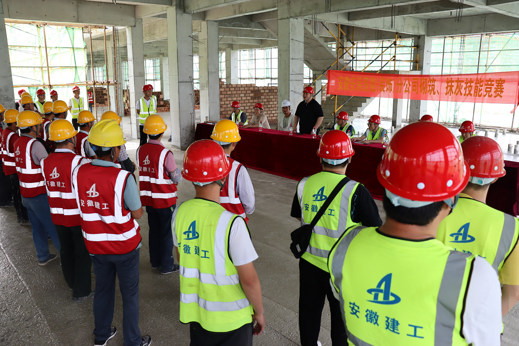 為深入學(xué)習(xí)宣傳貫徹習(xí)近平新時(shí)代中國(guó)特色社會(huì)主義思想和黨的二十大精神,大力弘揚(yáng)工匠精神,厚植工匠文化,5月31日下午,房建(裝飾)分公司黨支部在阜南縣第一小學(xué)項(xiàng)目部舉行了“學(xué)思踐悟二十大 崗位比武促發(fā)展”砌筑、抹灰技能大賽活動(dòng)。來(lái)自項(xiàng)目各勞務(wù)單位的14組參賽隊(duì)伍,20多名工人代表參加比賽。比賽邀請(qǐng)公司總工辦及分公司領(lǐng)導(dǎo)班子成員和部分項(xiàng)目經(jīng)理?yè)?dān)任評(píng)委。