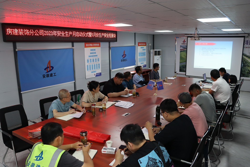 5月31日上午,房建(裝飾)分公司在阜南污水廠項目會議室召開5月份生產(chǎn)安全經(jīng)營會。分公司領(lǐng)導(dǎo)班子成員、各部門負(fù)責(zé)人、項目經(jīng)理及項目員工共20余人參加會議。會議由分公司副經(jīng)理王岳濤主持。