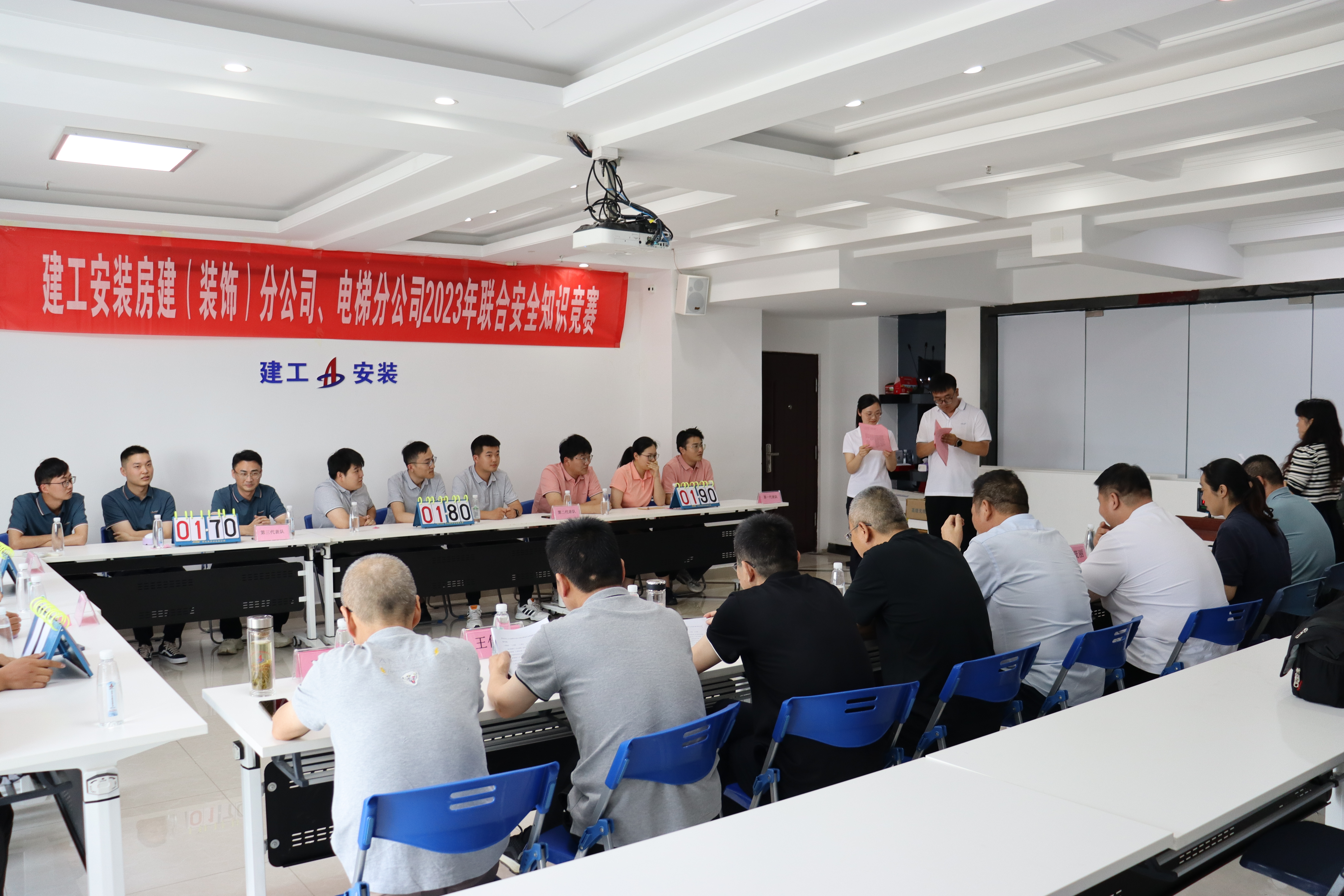 為深入貫徹黨的二十大精神和習(xí)近平總書記關(guān)于安全生產(chǎn)重要講話精神,近日,房建(裝飾)分公司、電梯分公司以“人人講安全、個(gè)個(gè)會應(yīng)急”為主題,聯(lián)合舉辦安全知識競賽活動(dòng)。公司黨委委員、副總經(jīng)理董雙武,工程管理部(安全管理部)有關(guān)負(fù)責(zé)同志出席活動(dòng)。
