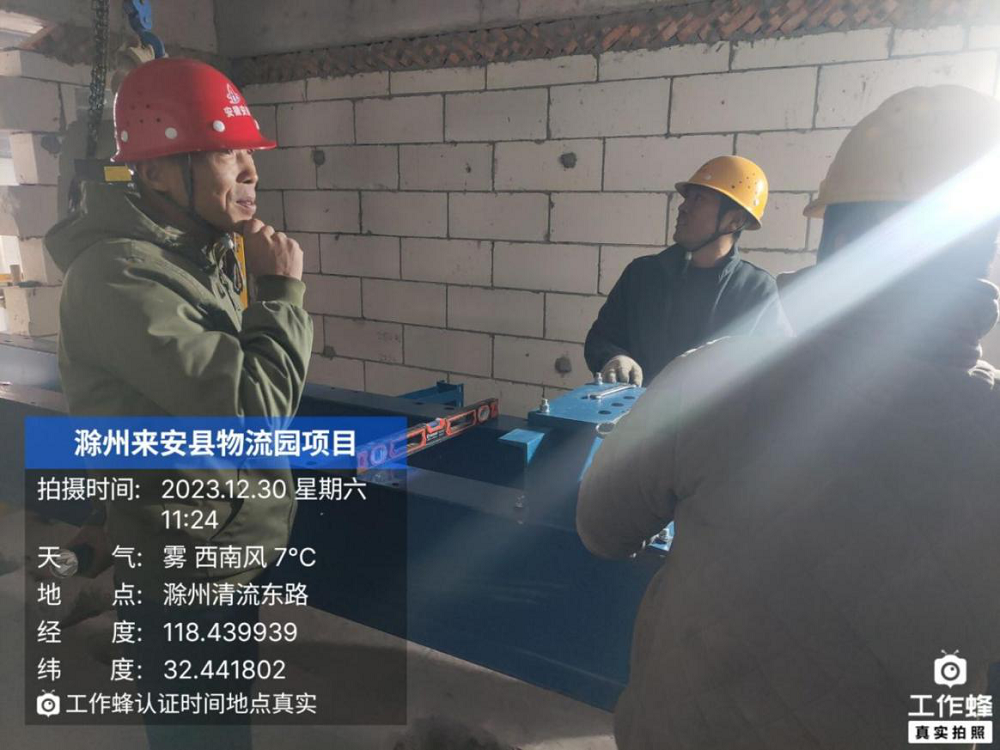 來(lái)安縣農(nóng)副產(chǎn)品冷鏈物流產(chǎn)業(yè)園電梯安裝工程現(xiàn)場(chǎng),項(xiàng)目經(jīng)理帶班對(duì)電梯機(jī)房進(jìn)行進(jìn)度、質(zhì)量、安全檢查,確保電梯安裝符合工程建設(shè)標(biāo)準(zhǔn)。