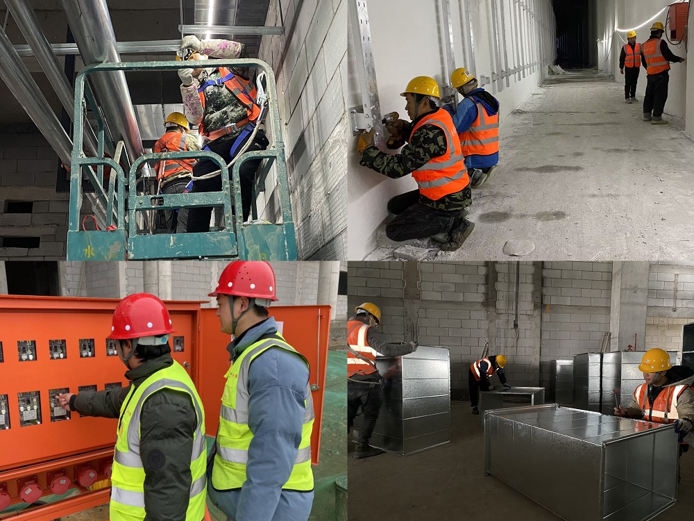 圖為:合肥新橋國際機場T2航站樓建設(shè)項目正在進行共同溝電力倉橋架固定底座安裝、風管組裝、走道內(nèi)橋架安裝以及現(xiàn)場臨時用電檢查